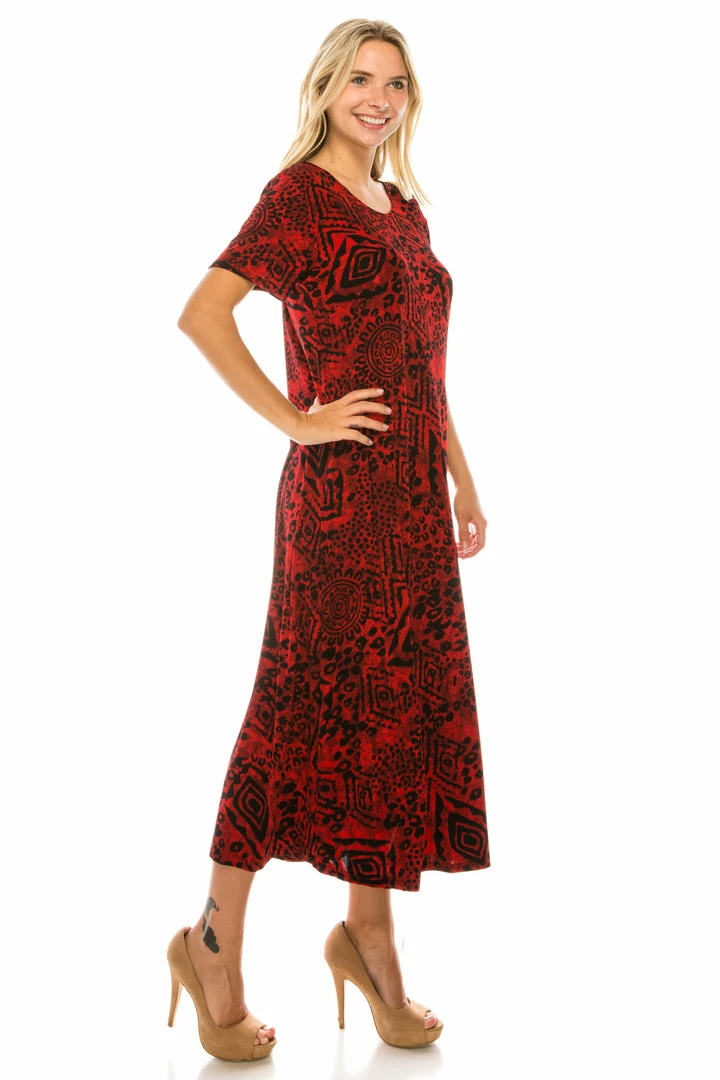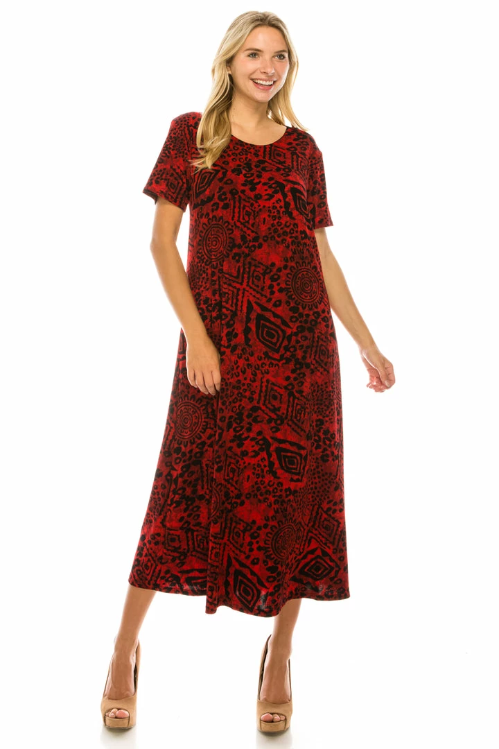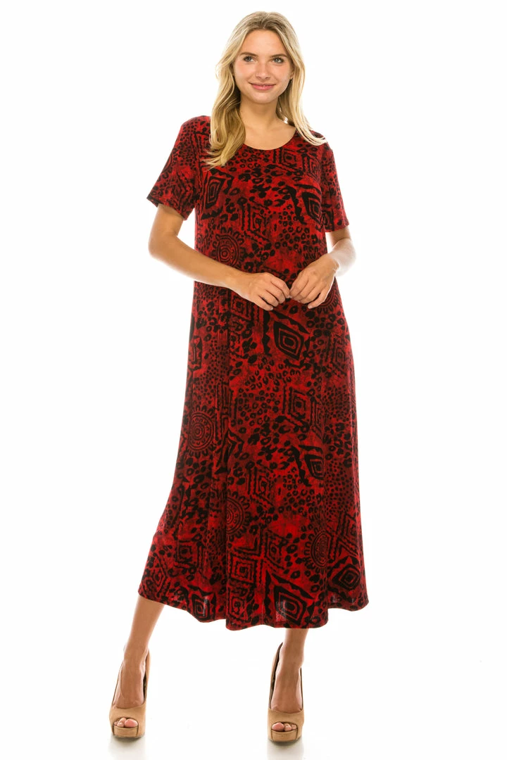 Dresses Jostar Women’s Stretchy Long Dress Short Sleeve Print-702BN-SRP1-W277