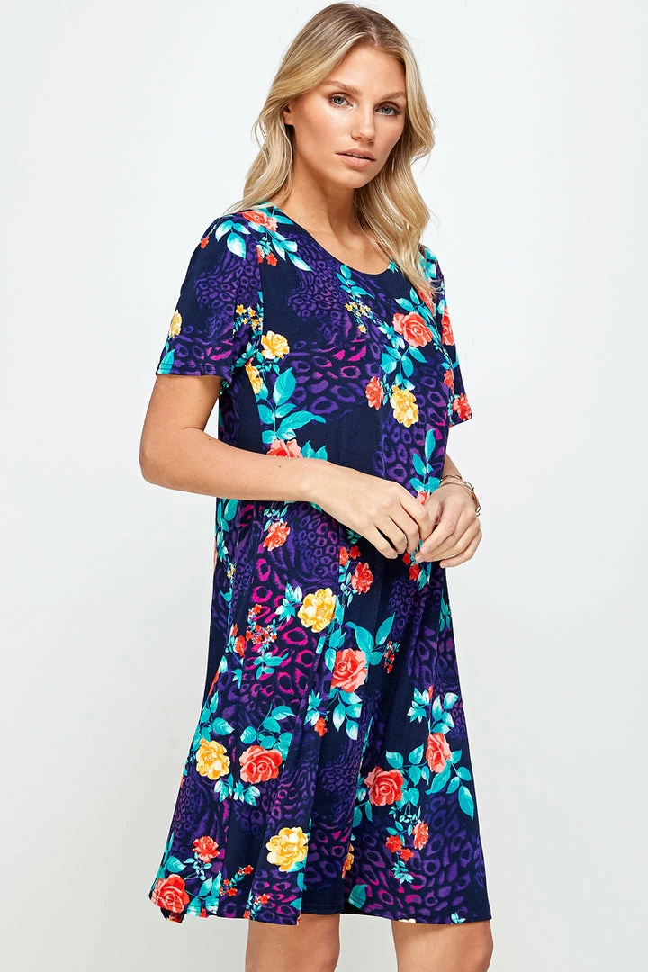 - Short sleeve and soft round-neckline short dress and 37 inches in length.