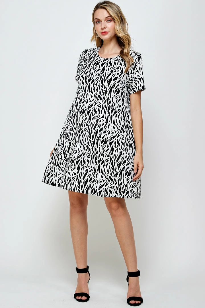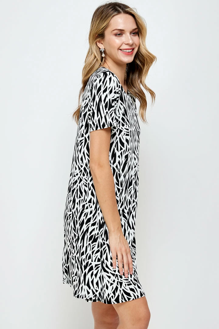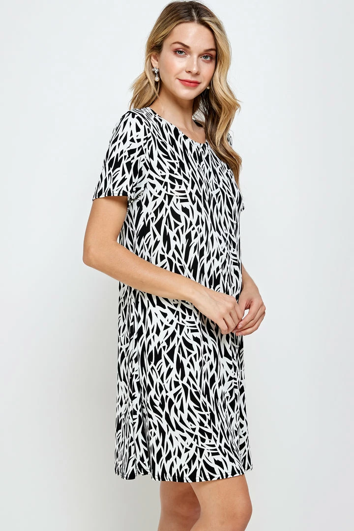 - Short sleeve and soft round-neckline short dress and 37 inches in length.