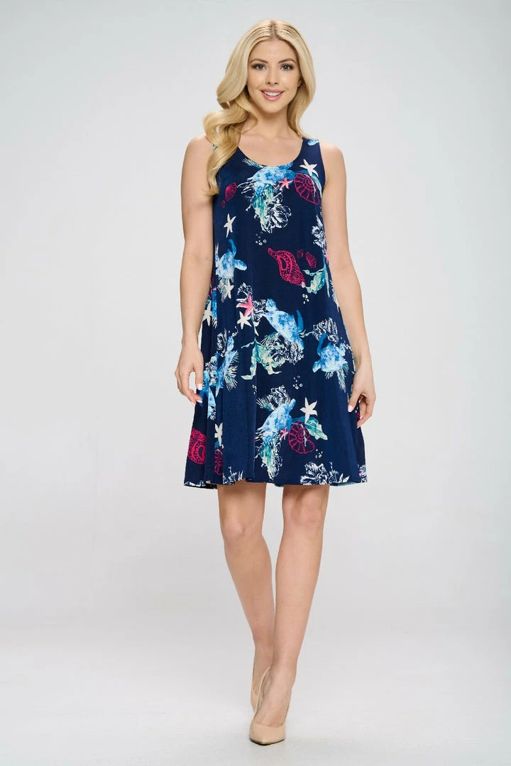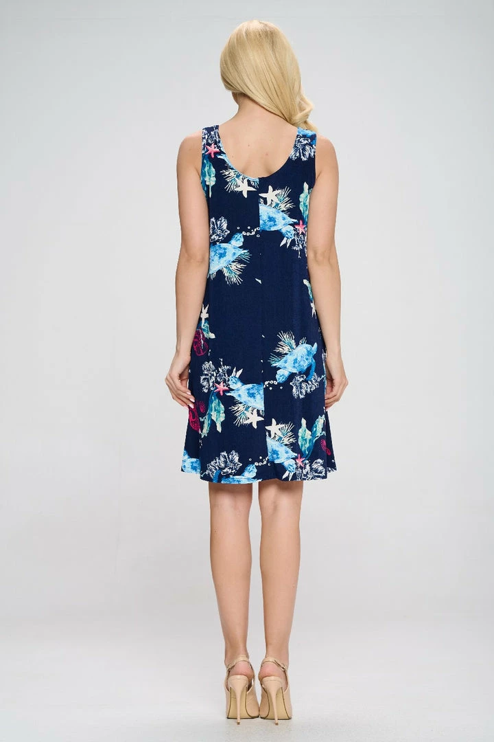 - Sleeveless and soft round-neckline short dress and 37 inches in length.