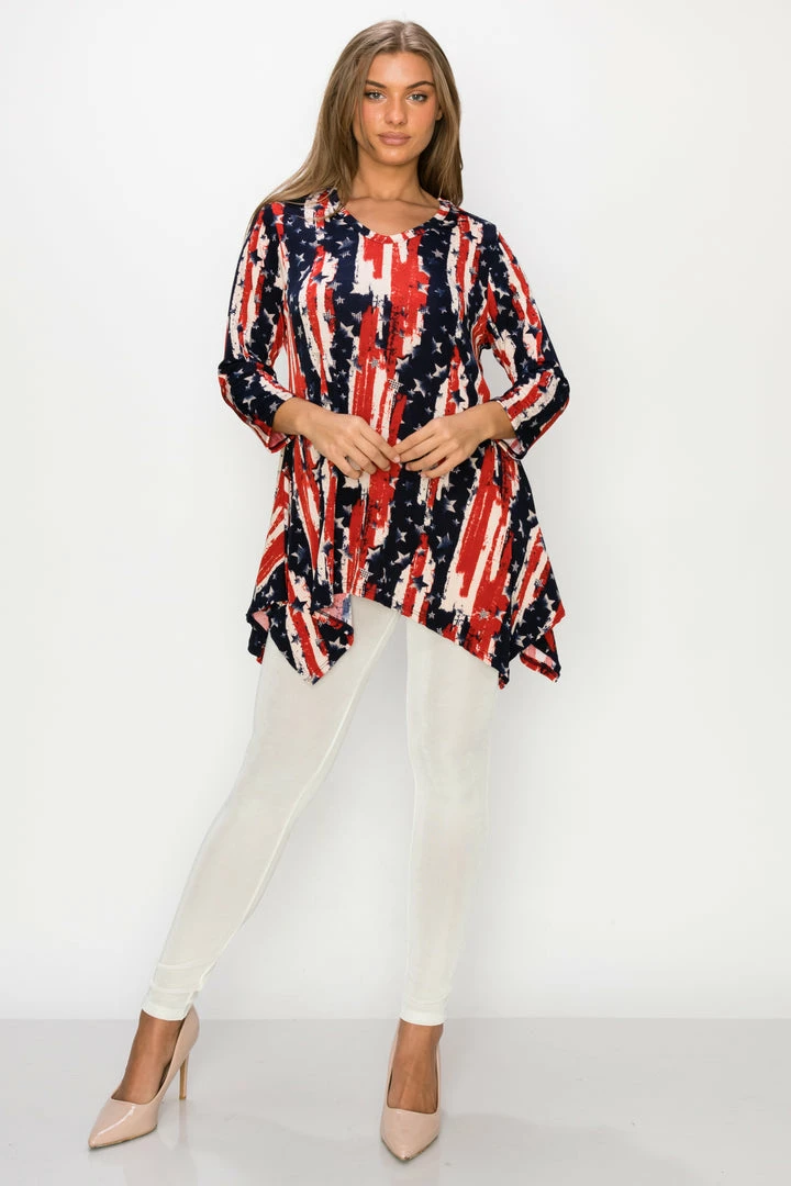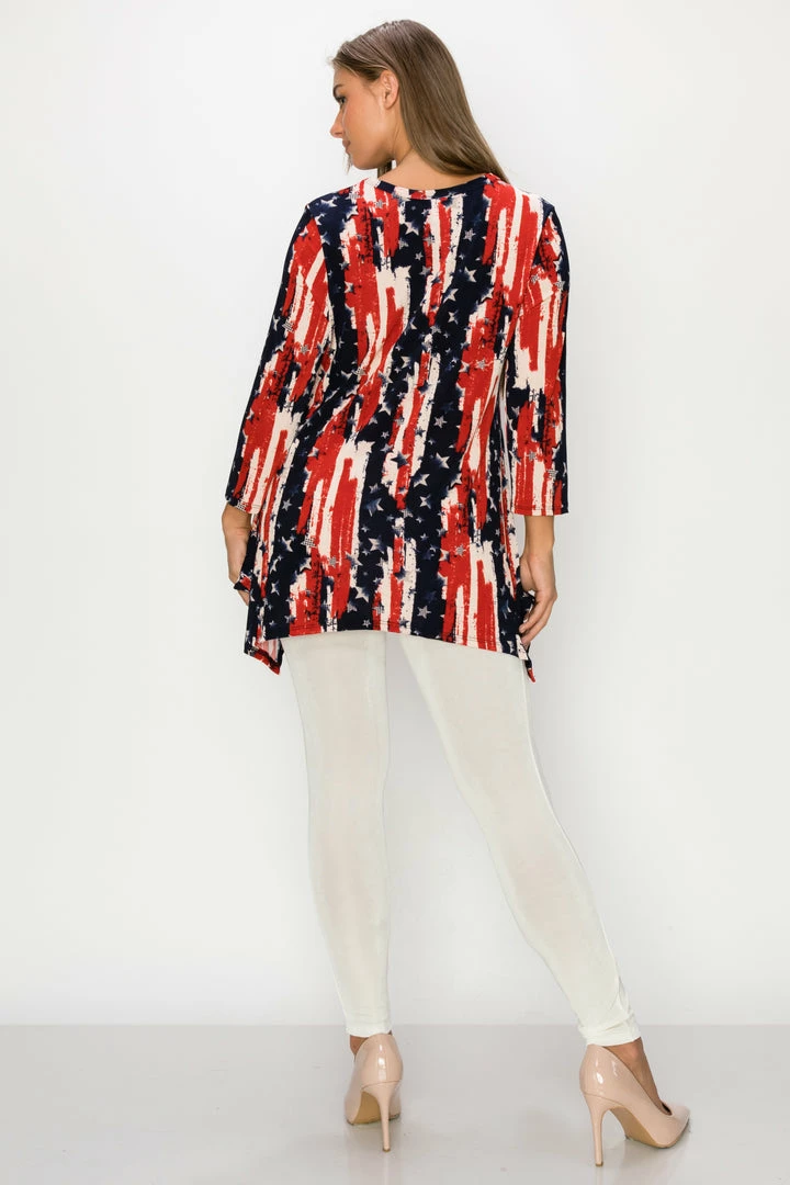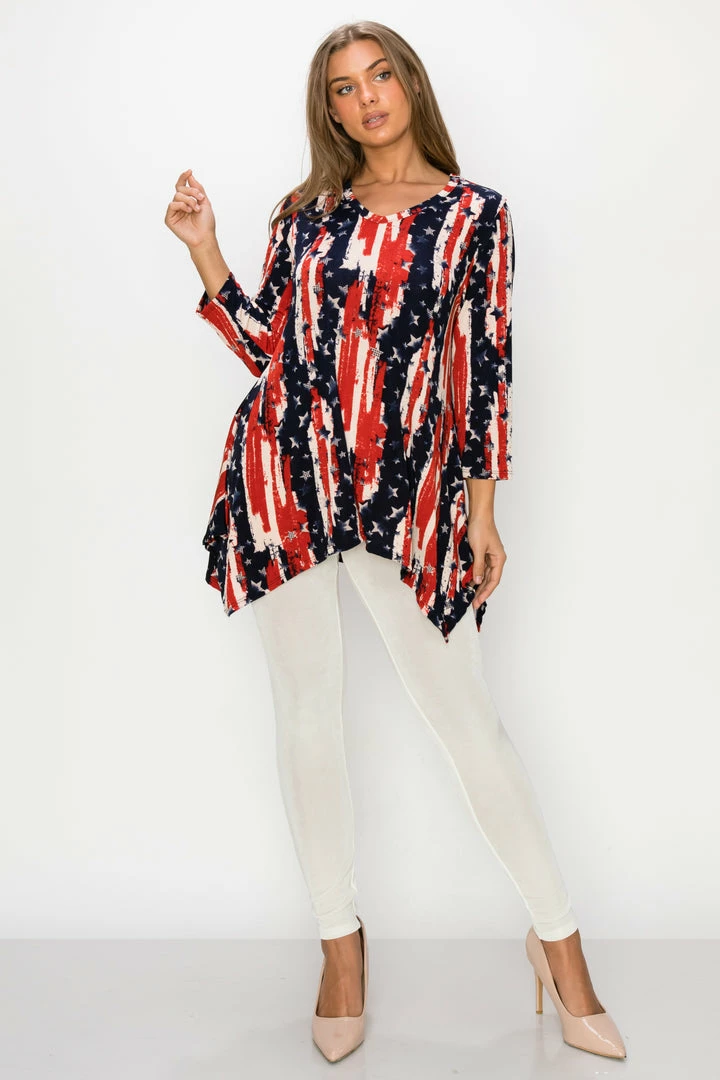 Jostar American Print V-Neck Binding Top 3/4 Sleeve- 313BN-QRP1-W306 Tops