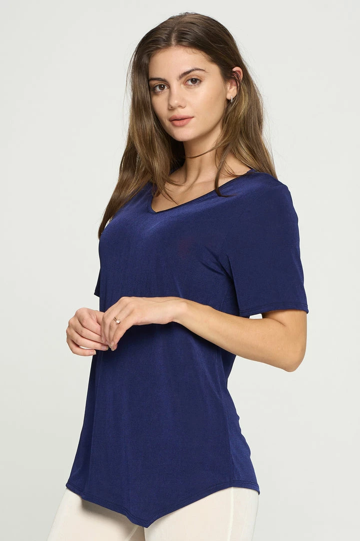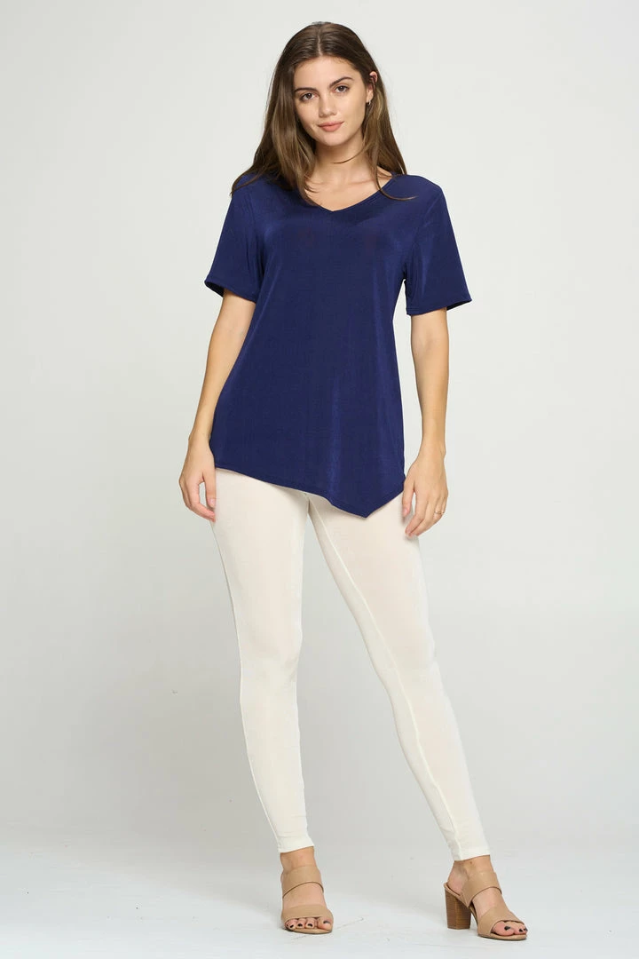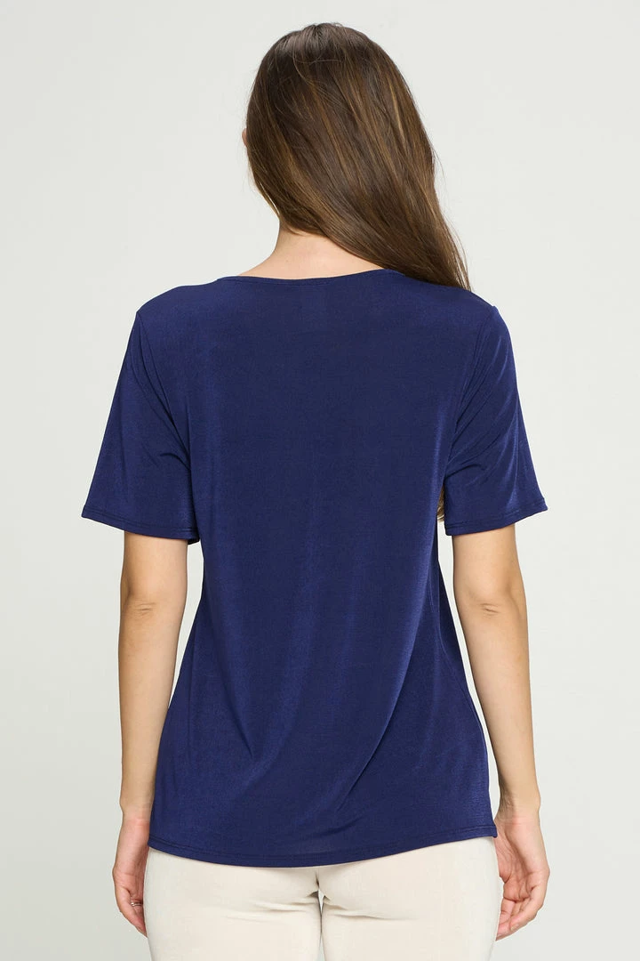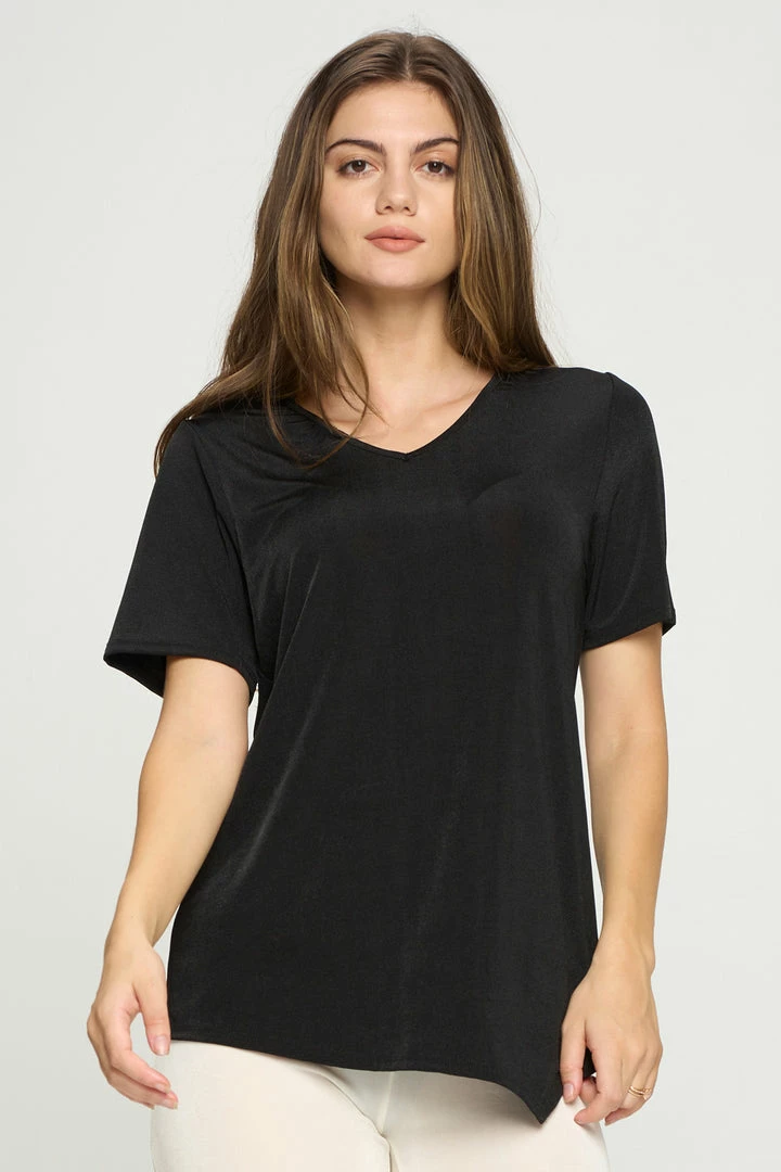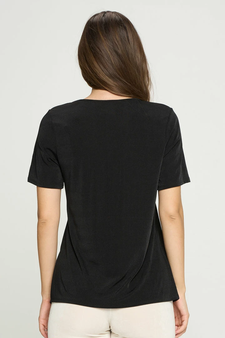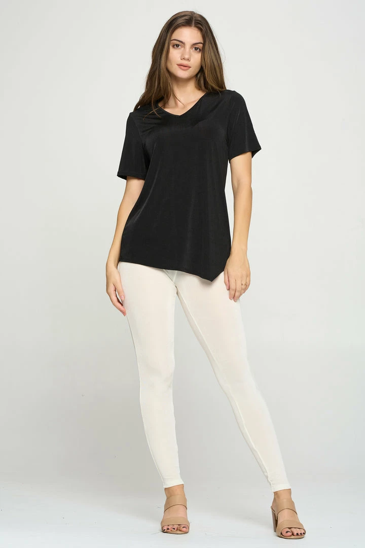 - Short sleeve V-neck Binding top.