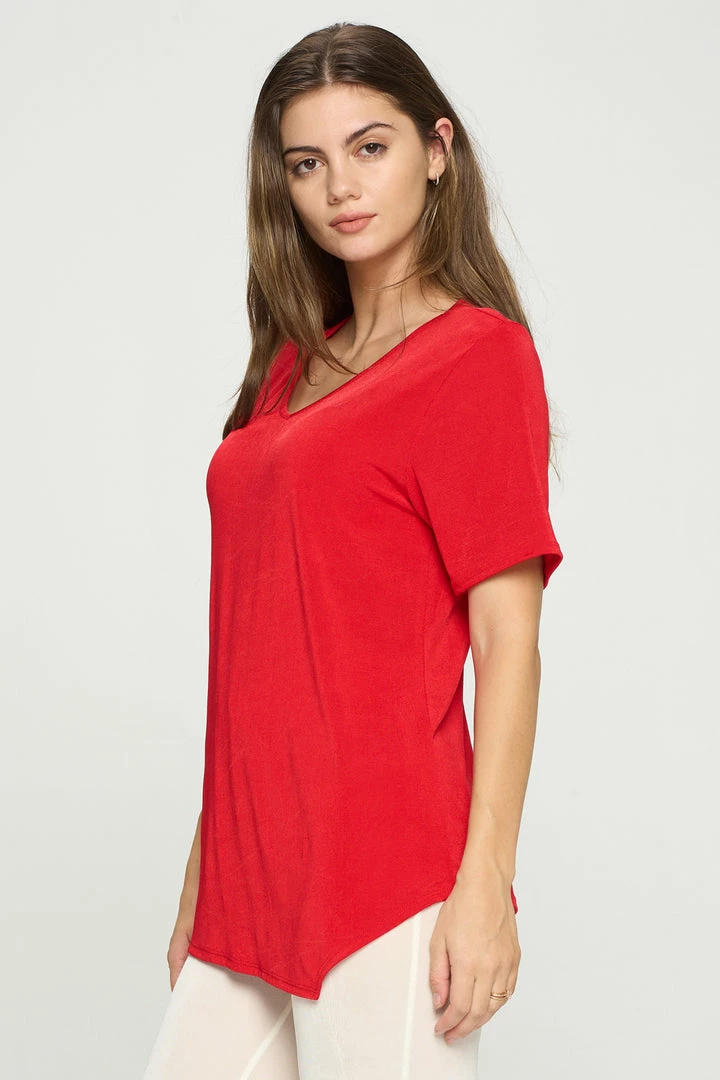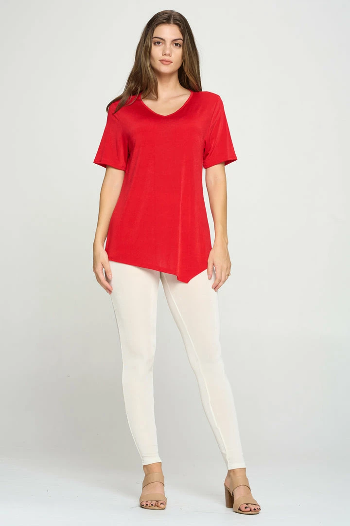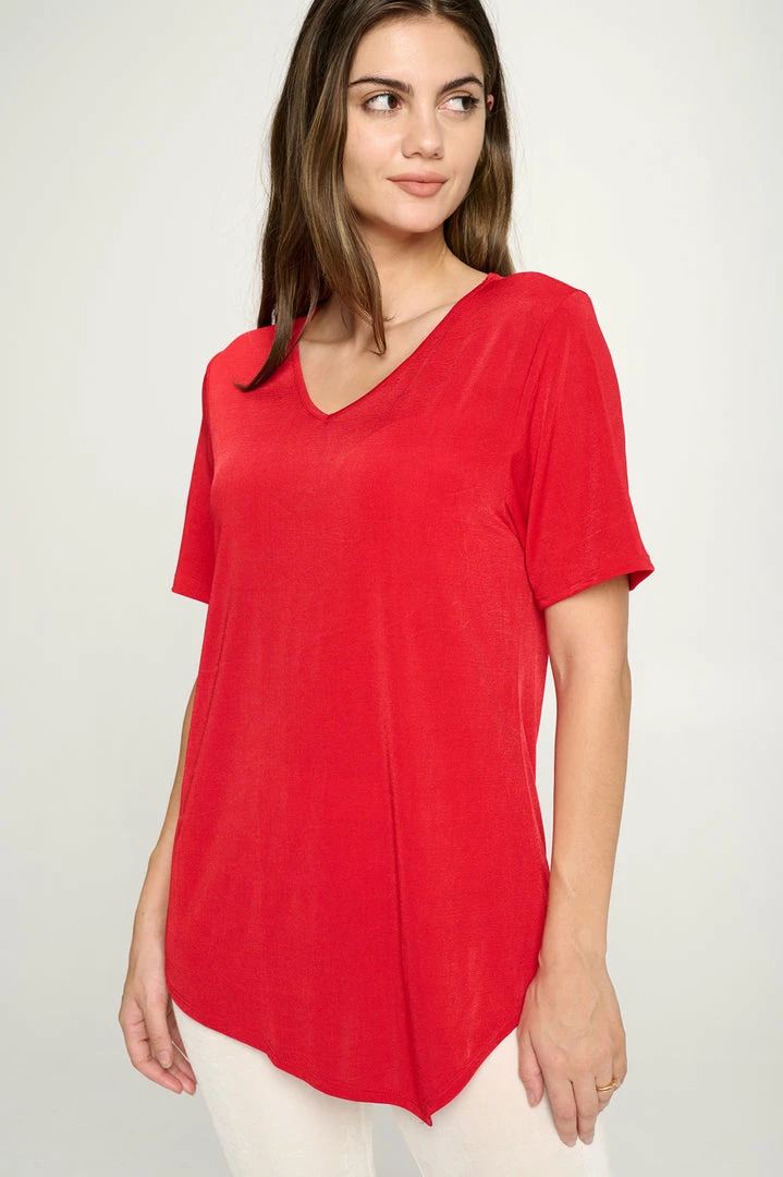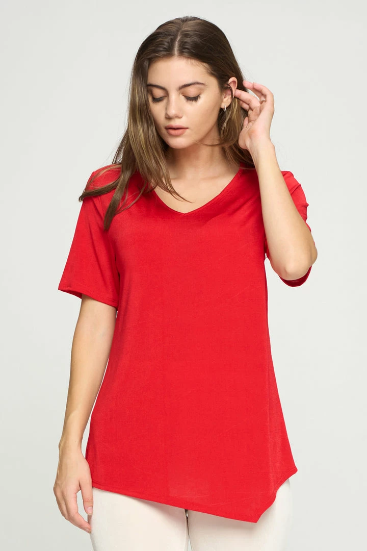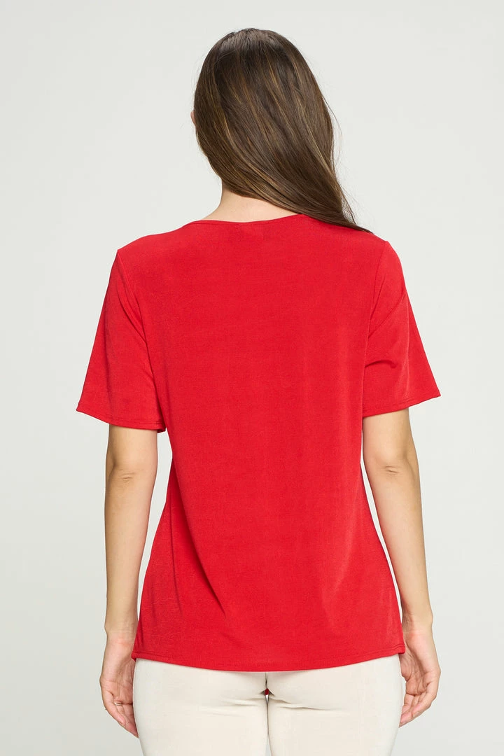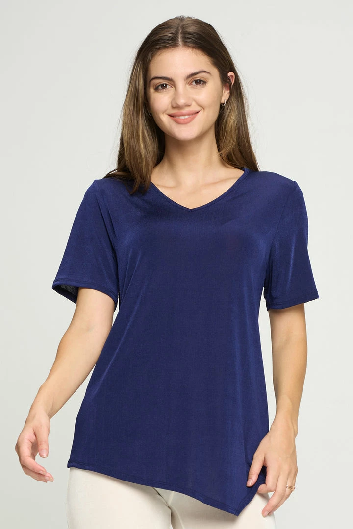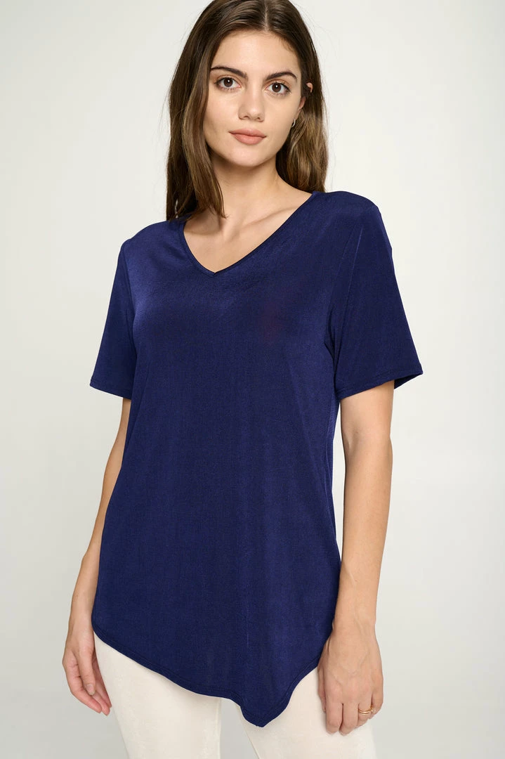 - Short sleeve V-neck Binding top.