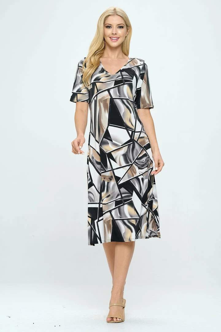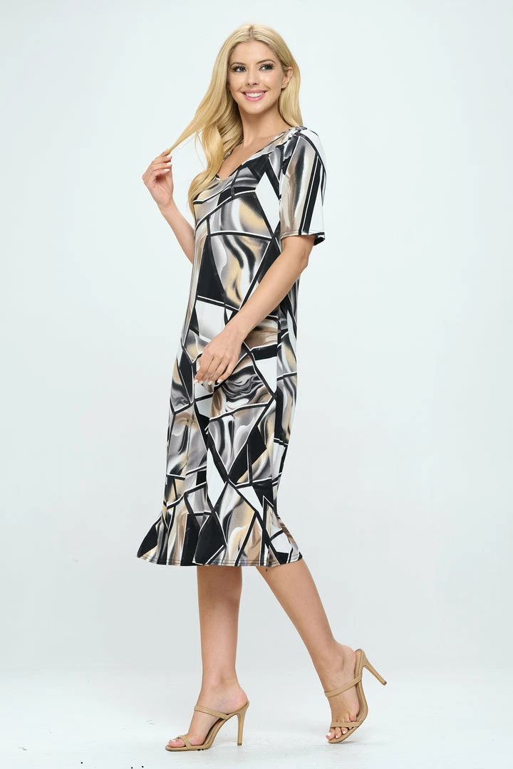 HIT Midi V-Neck Dress With Side Slits (HS)(Print)