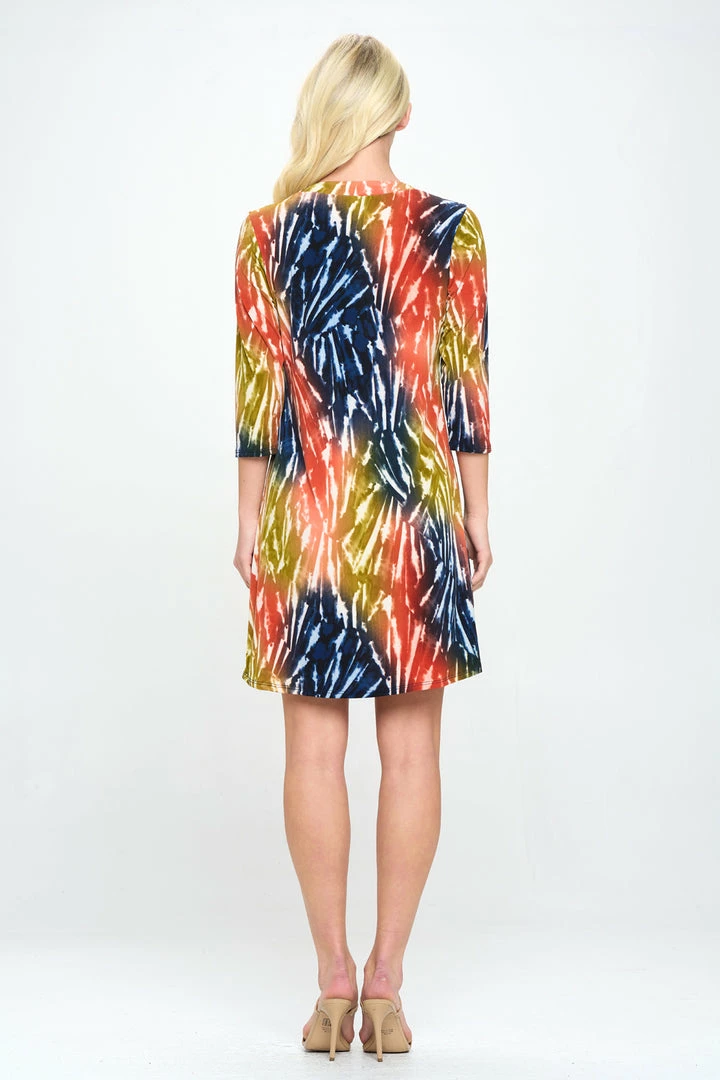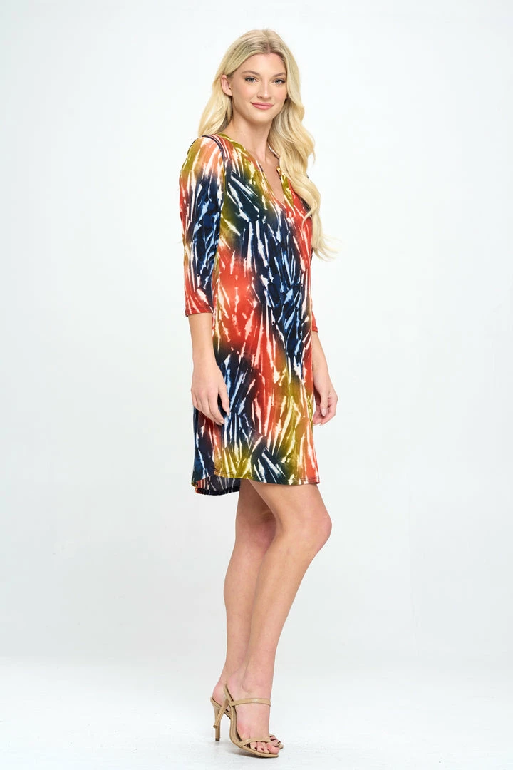 - HIT Notch Neck Quarter Sleeve Dress in Print