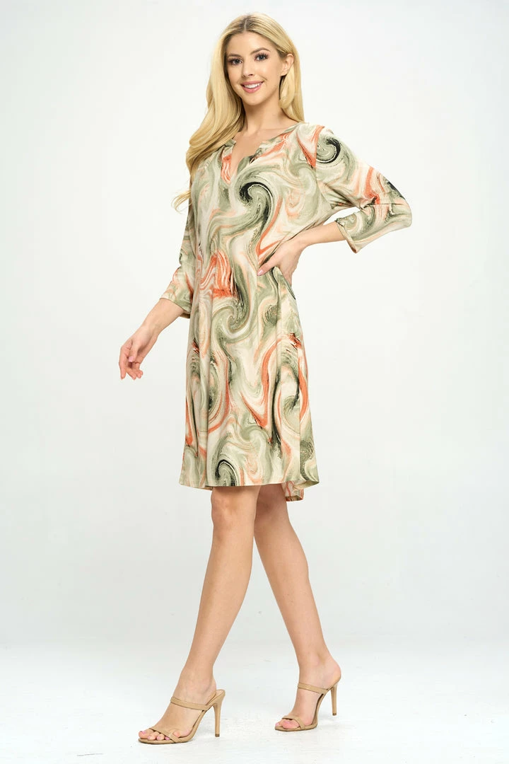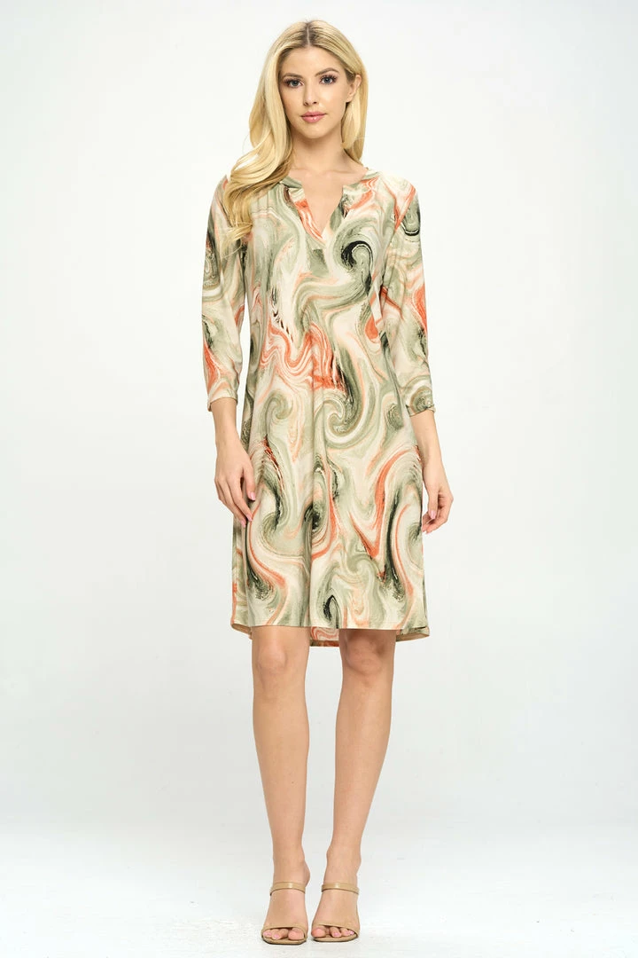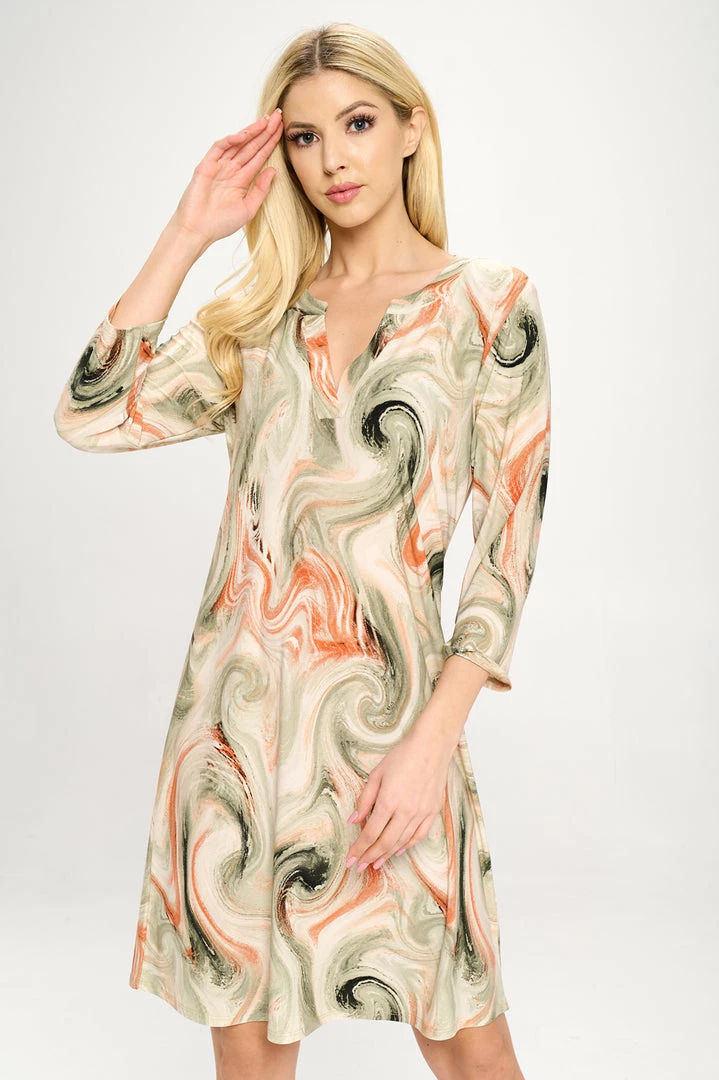 - HIT Notch Neck Quarter Sleeve Dress in Print