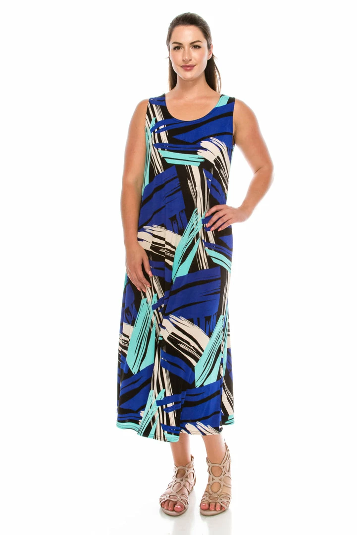 Jostar Dresses Stretchy Long Tank Dress Print -700BN-TRP1-W307