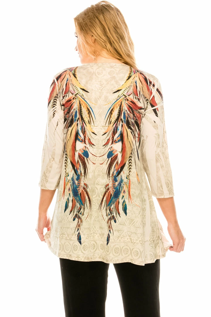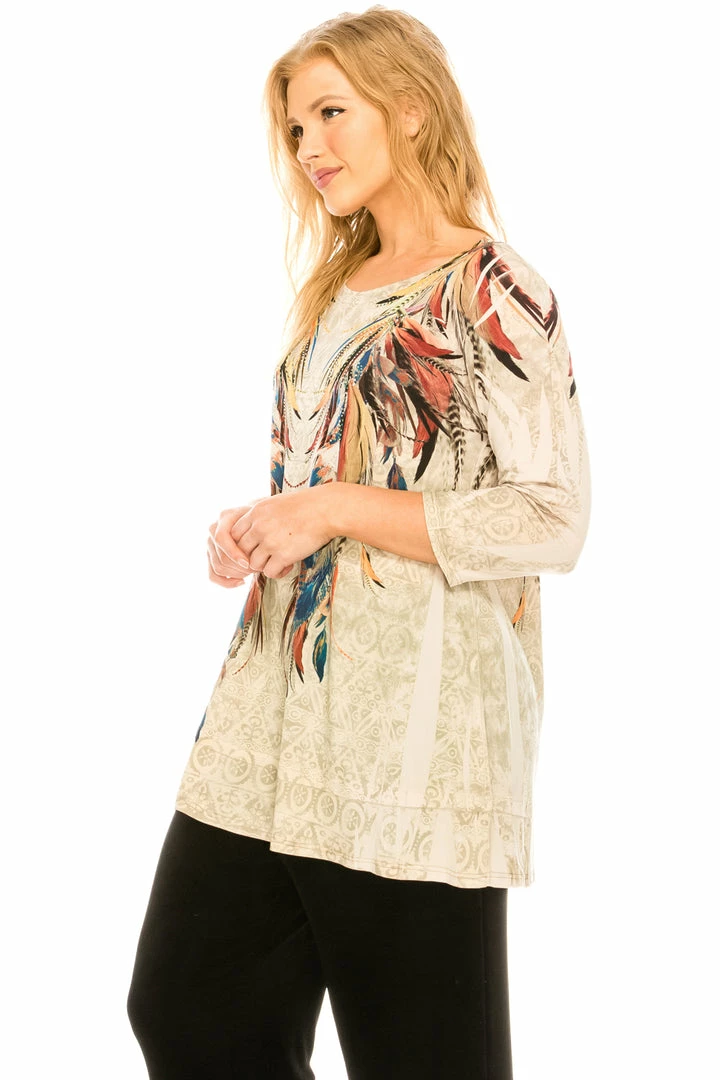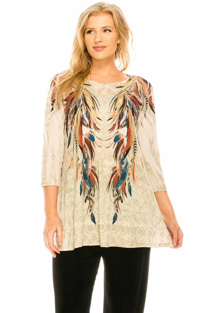 Jostar Women’s Stretchy Rounded Bottom Tunic TopQuarter Sleeve Print Plus, 346BN-QXP-W166 Tops