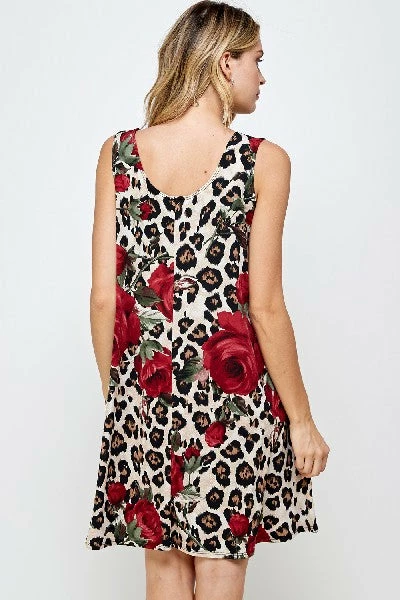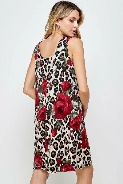 - Sleeveless and soft round-neckline short dress and 38 inches in length with a variety of prints available.