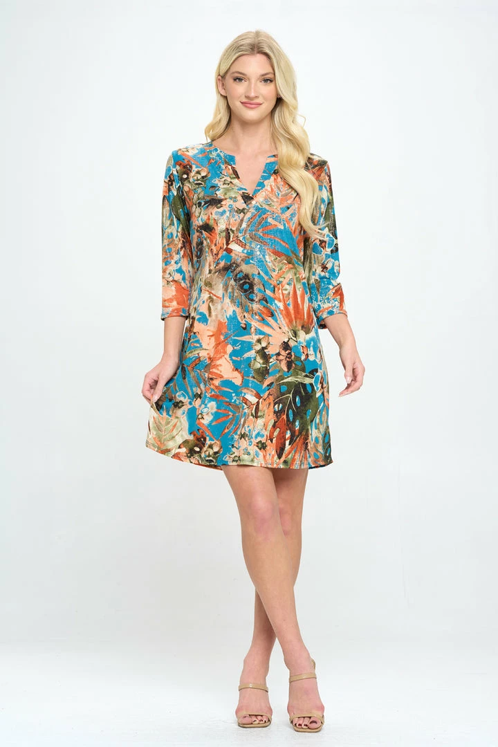 - HIT Notch Neck Quarter Sleeve Dress in Print