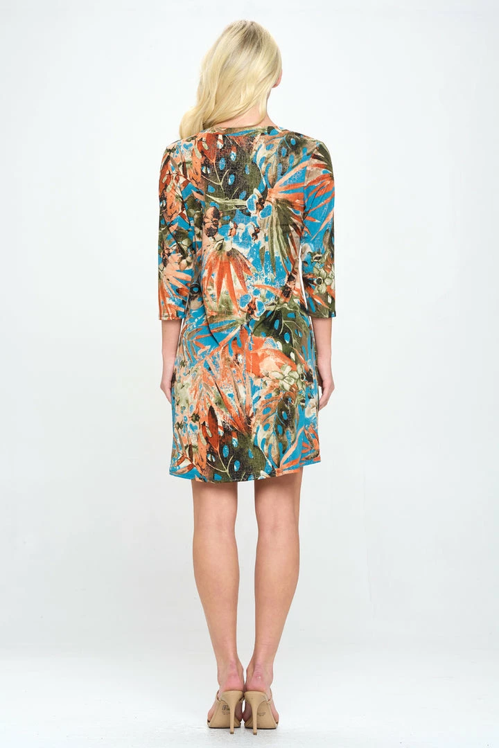 Jostar HIT Notch Neck Quarter Sleeve Print Dress-776HT-QRP1-F026 Short Length