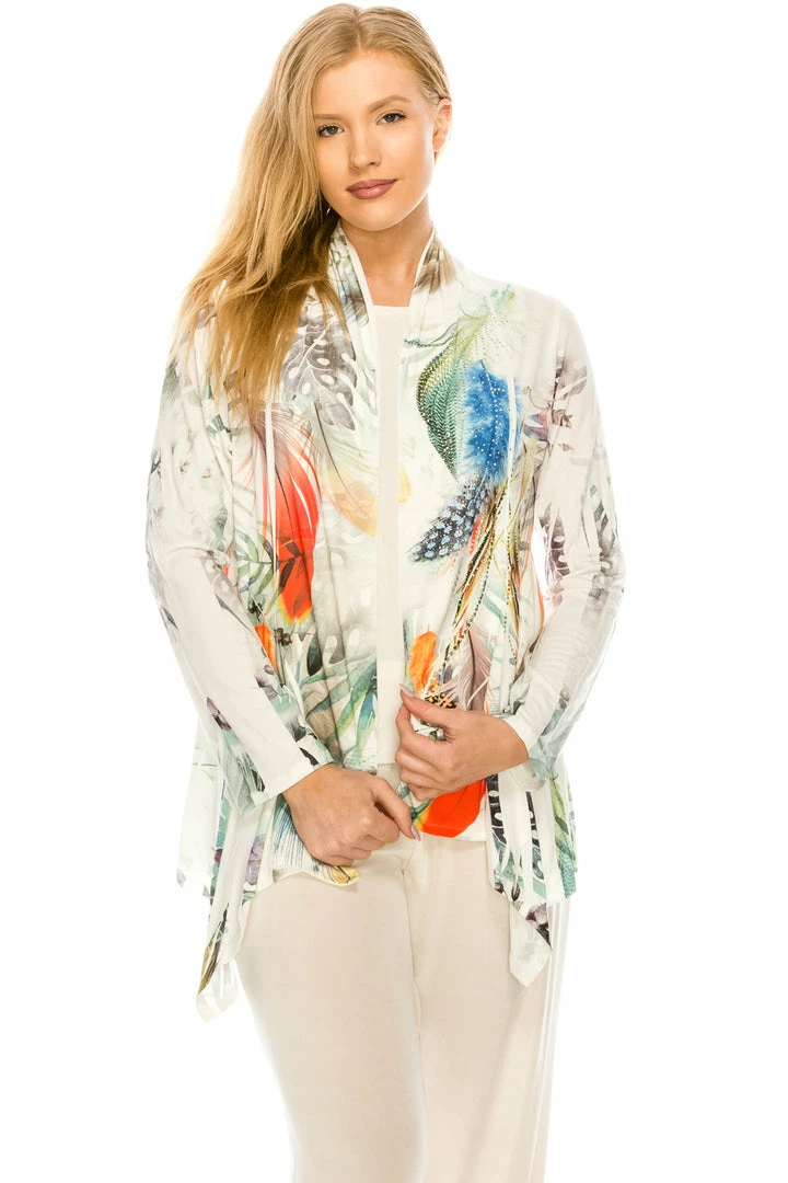 Long sleeve bolero with a variety of prints available.Hand or machine wash in cold water.Made in USA.94% Polyester, 6% Spandex.