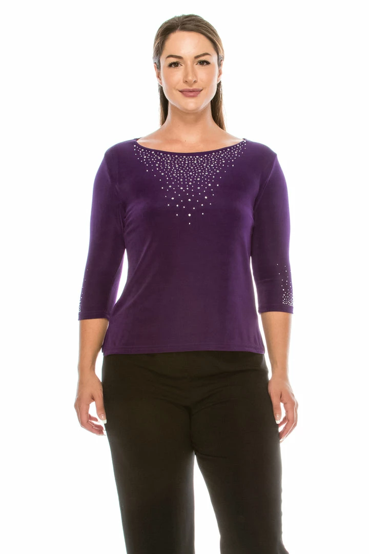 Jostar Non Iron Rhinestone Accent Long Sleeve Scoop Top-134AY-QRS1-R-R077