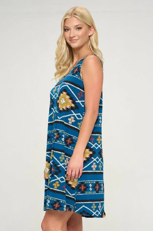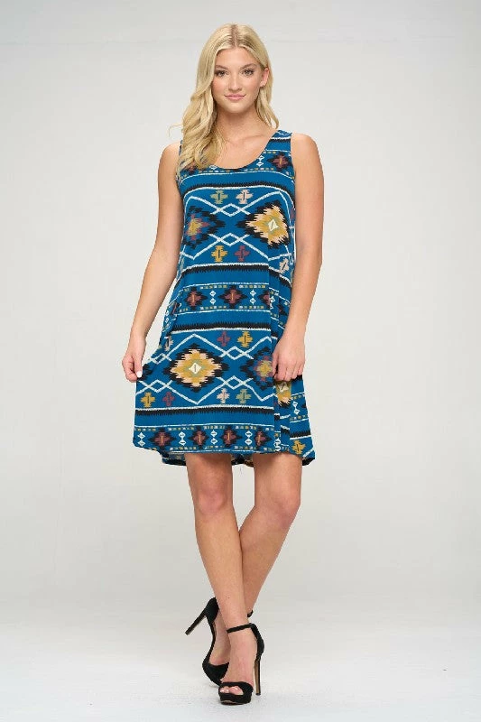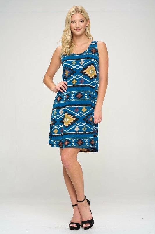 - Sleeveless and soft round-neckline short dress and 38 inches in length with a variety of prints available.