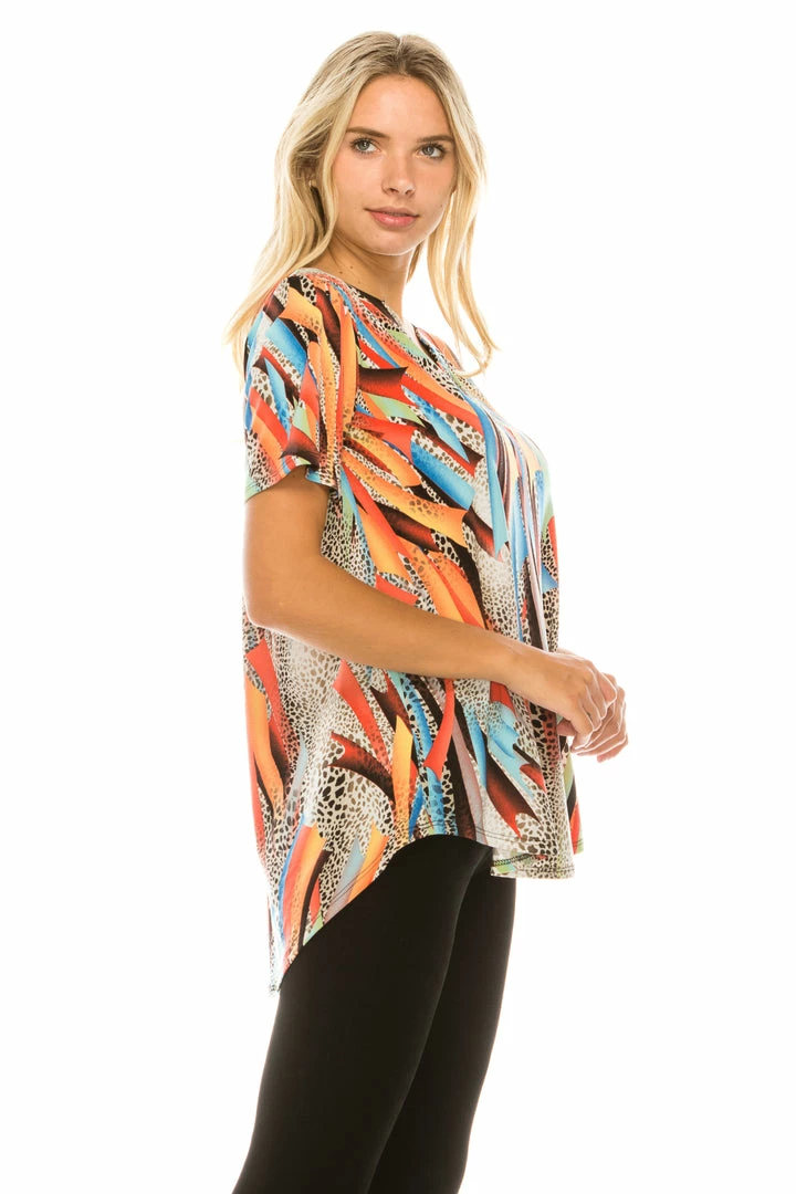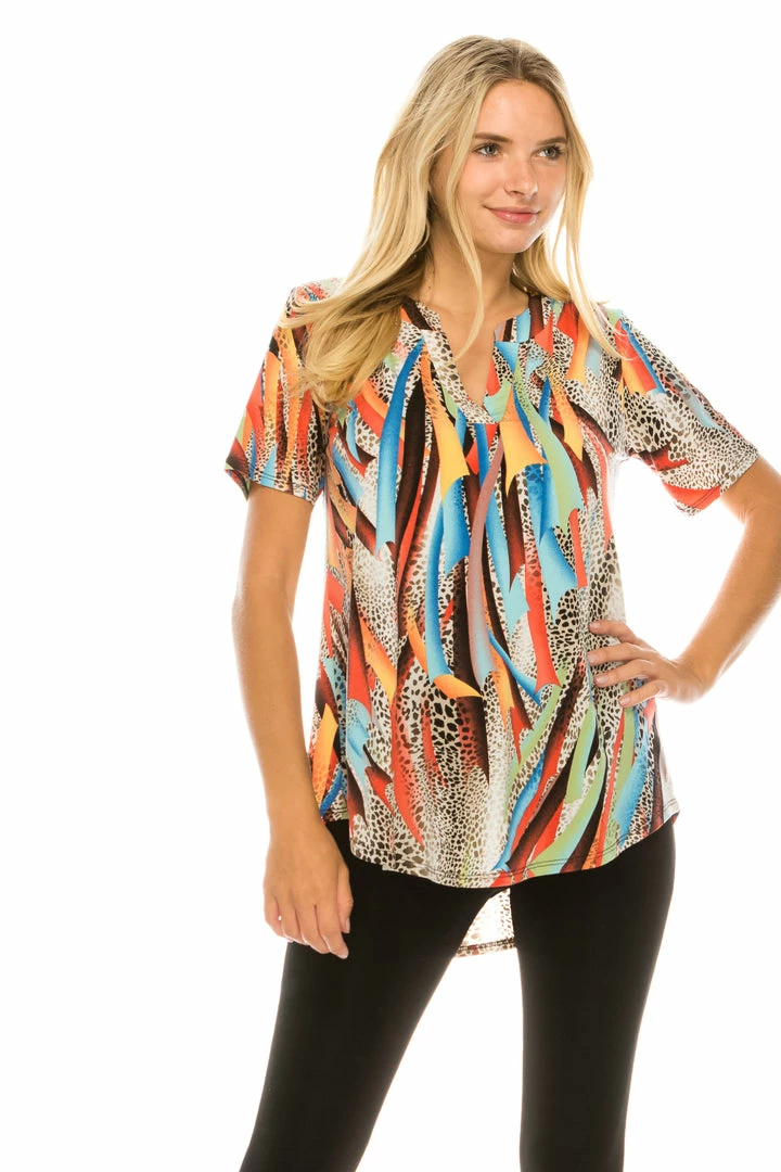 Jostar Online HIT Notch Neck Rolled Sleeve Top-359HT-SRP1-W271 Short Sleeves