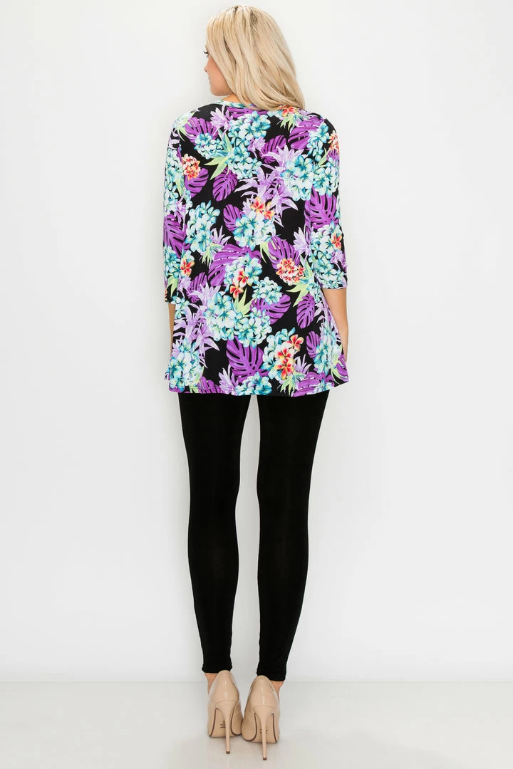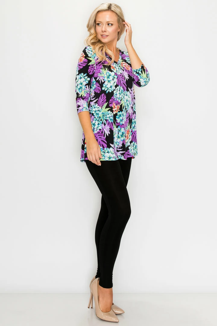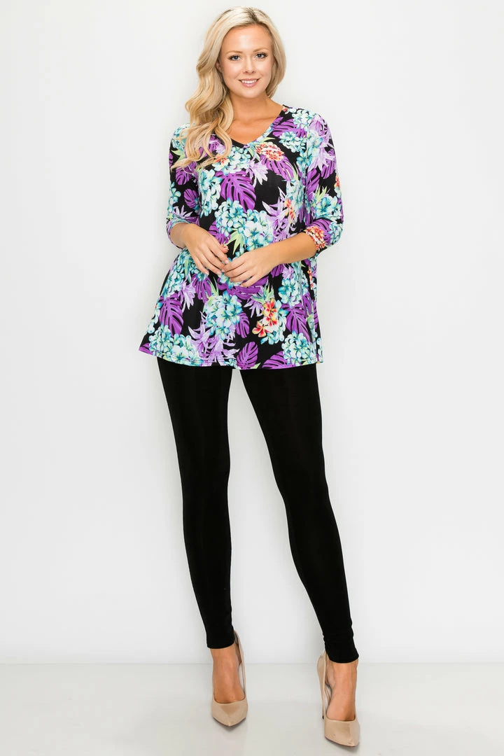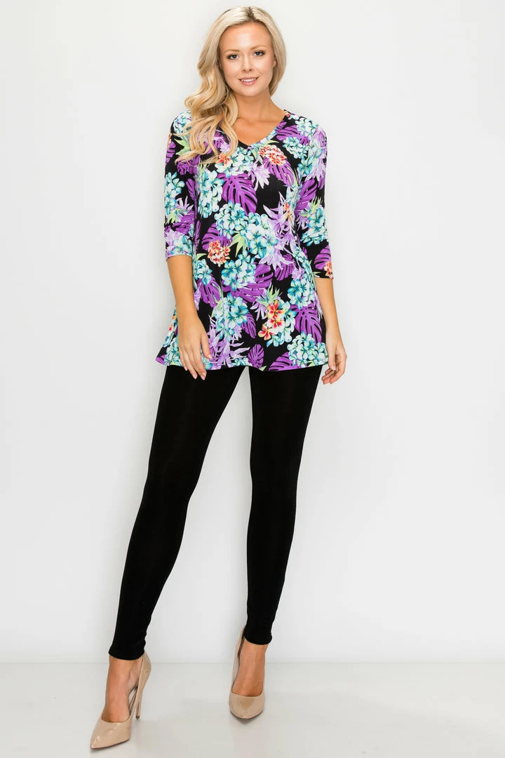 Jostar Online Jostar Women’s HIT V-Neck Binding Tunic Top Quarter Sleeve Print-347HT-QRP1-W922 Quarter Sleeves