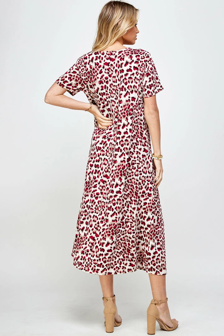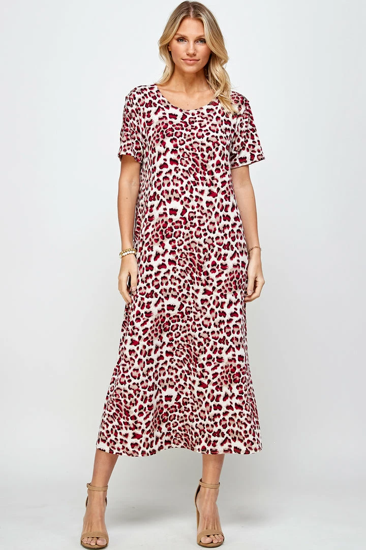 - Short sleeve and soft round-neckline long dress with a variety of prints available.