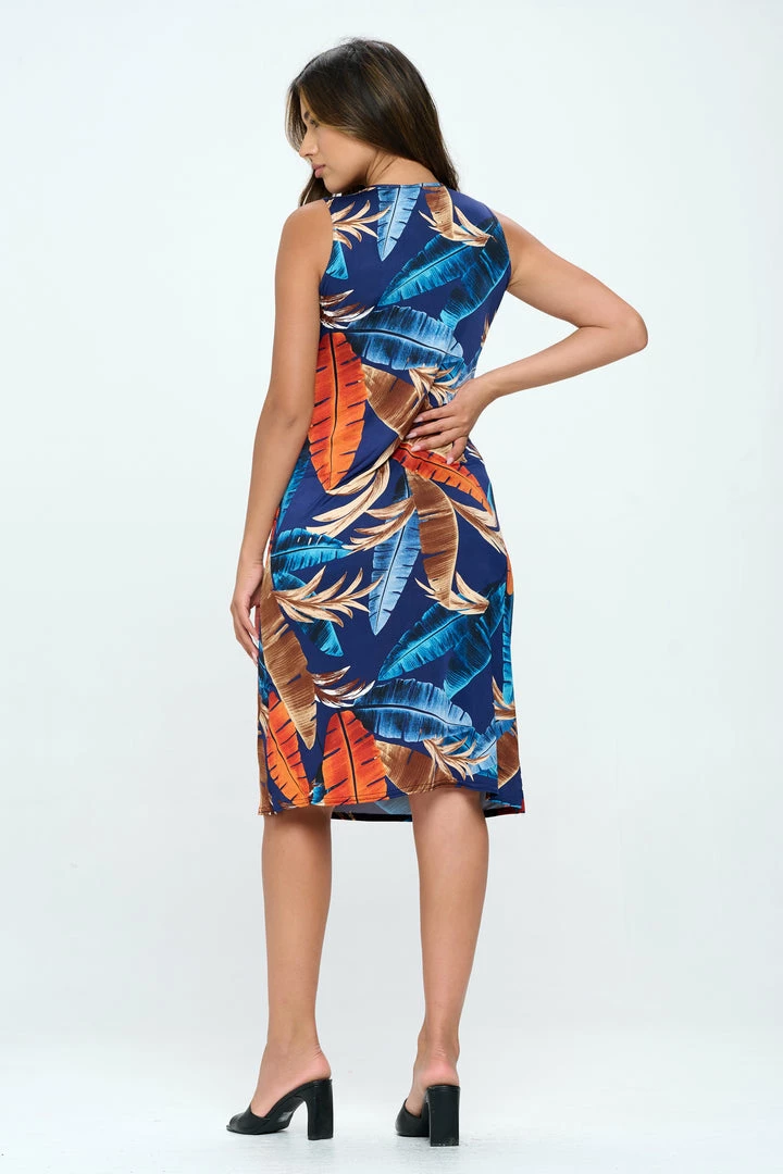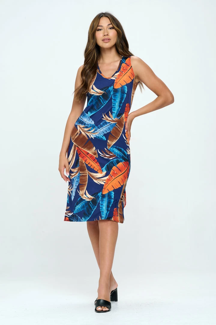 - VC V-Neck Midi Tank Dress with Side Slit (Print)