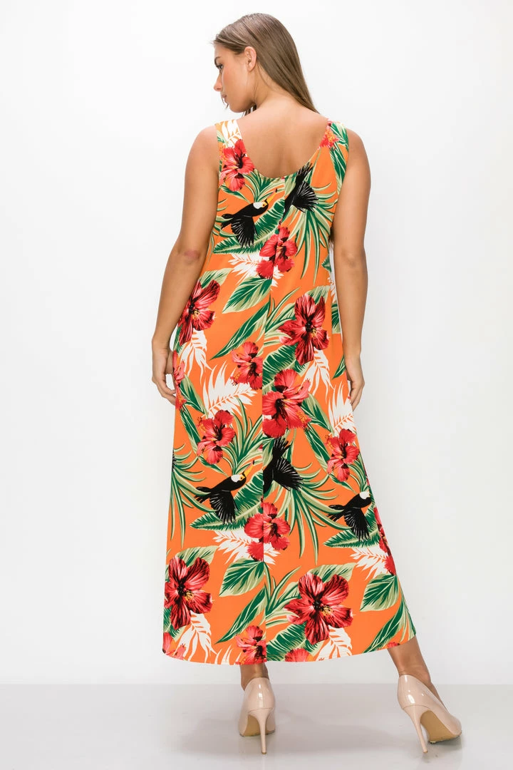 Jostar Plus Size Stretchy Tank Long Dress Sleeveless Plus In Print-700BN-TXP-W320