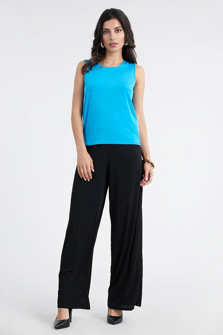 - Sleeveless and soft round-neckline and an approximate length from shoulder to hem is 23 inches in size M.