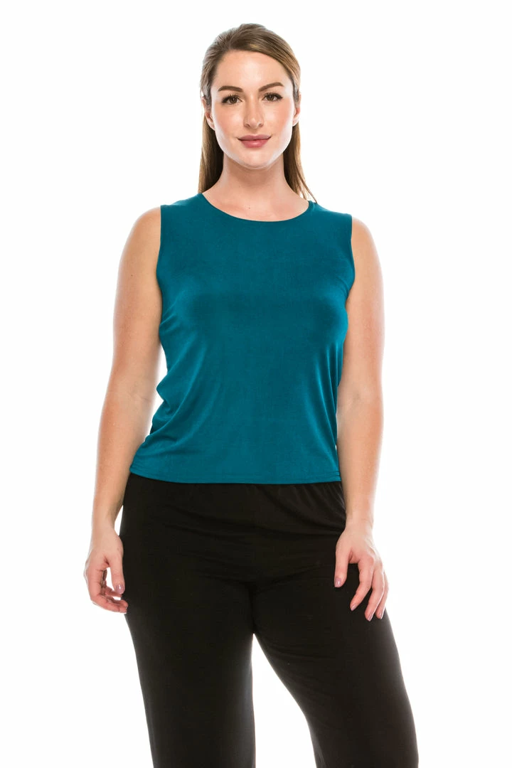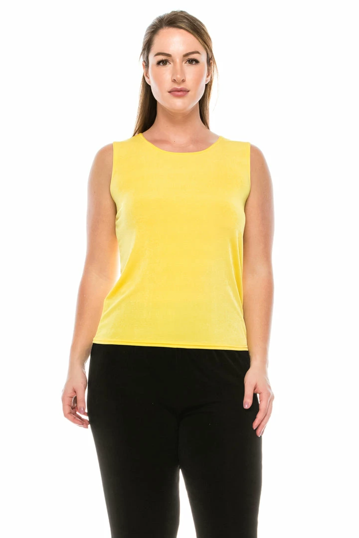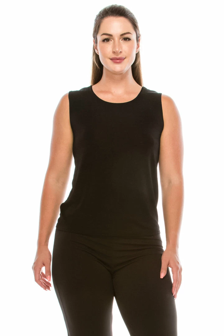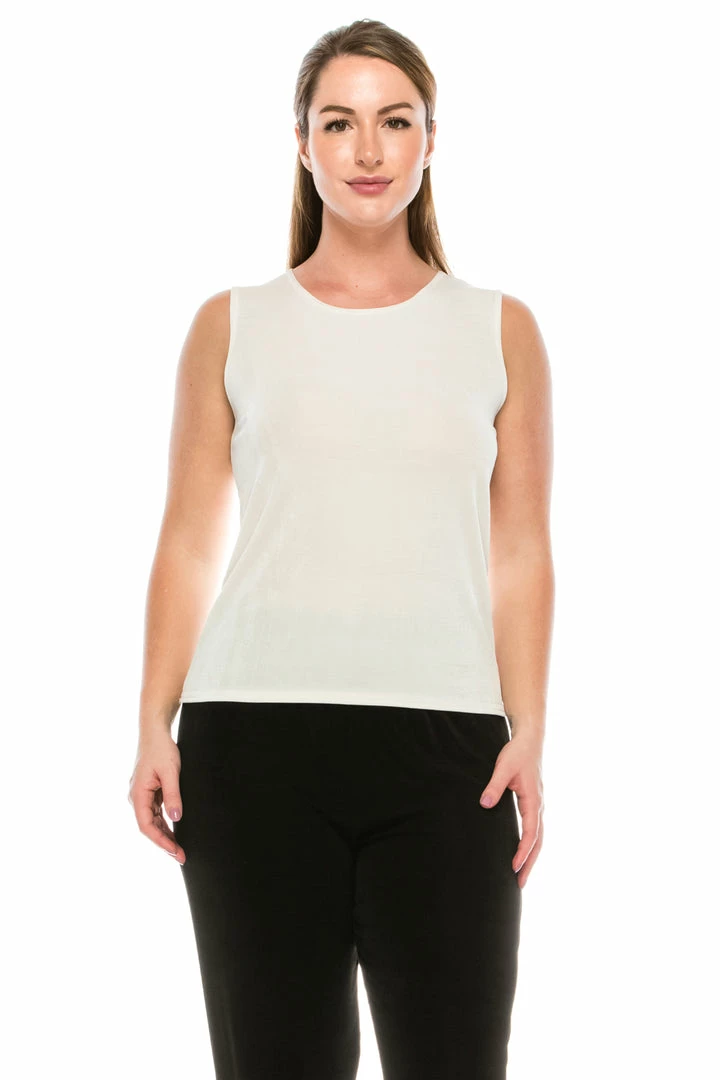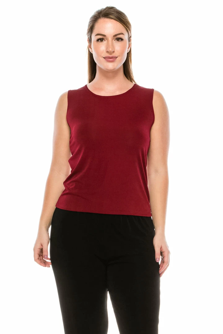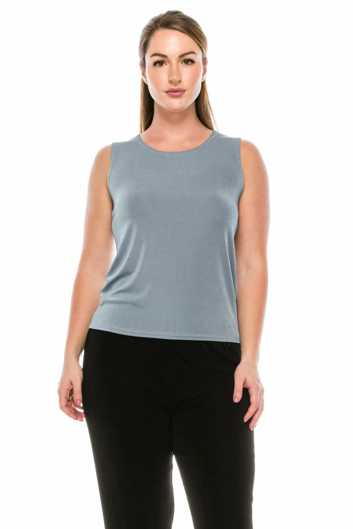 - Sleeveless and soft round-neckline.