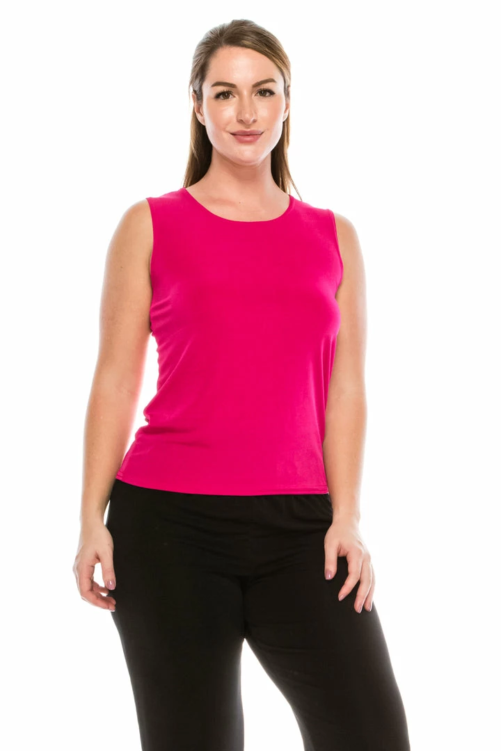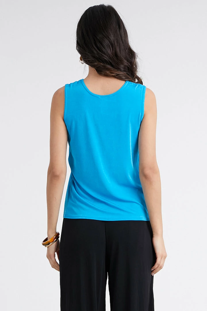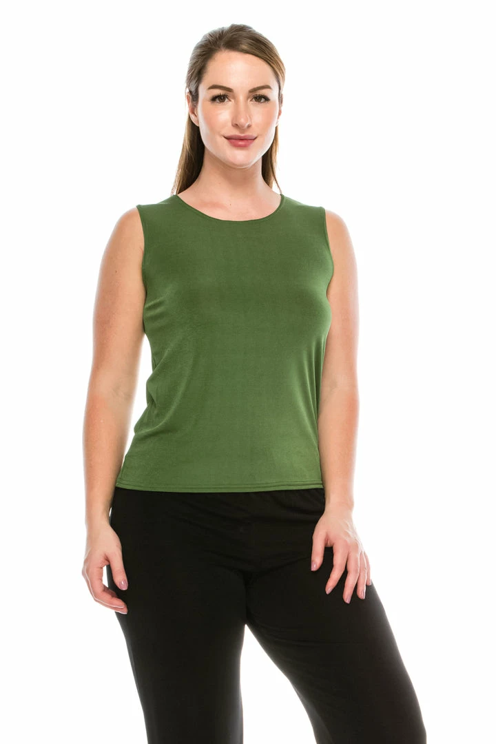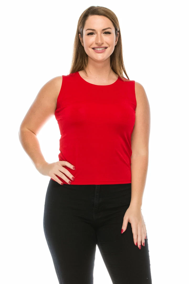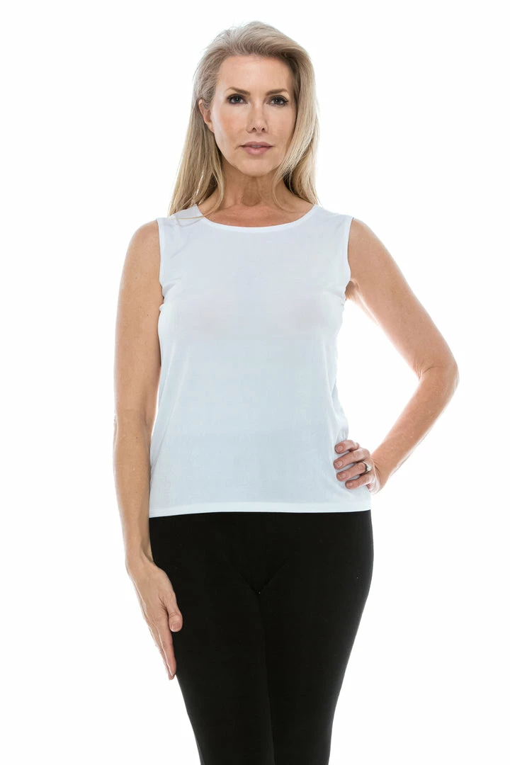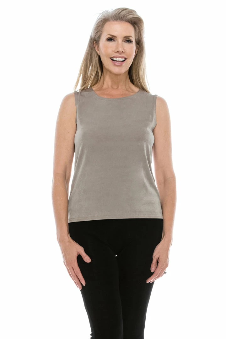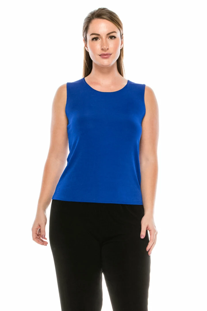 - Sleeveless and soft round-neckline.