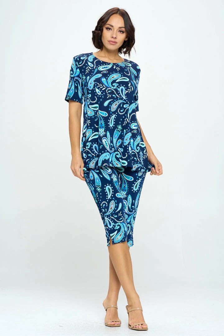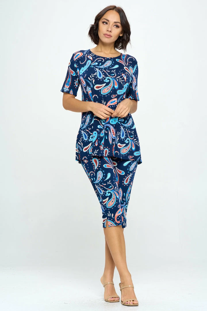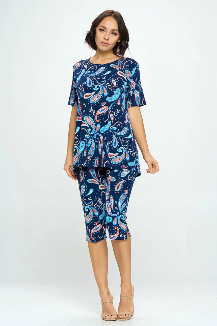 Jostar Stretchy Capri Pant Set Short Sleeve Print-903BN-SRP1-W323