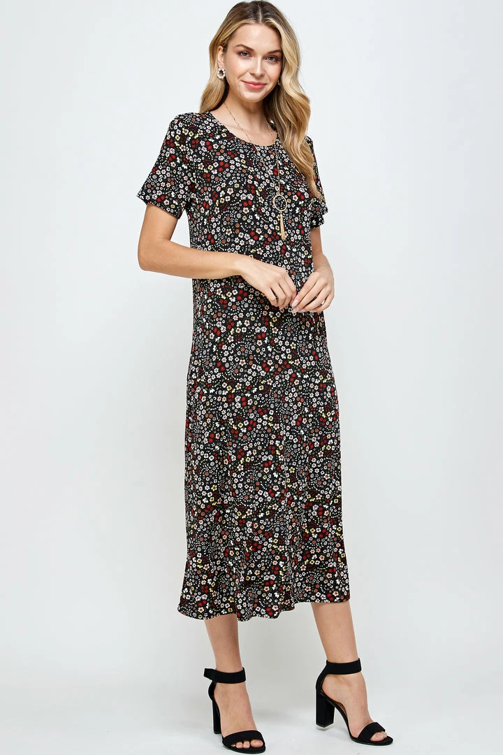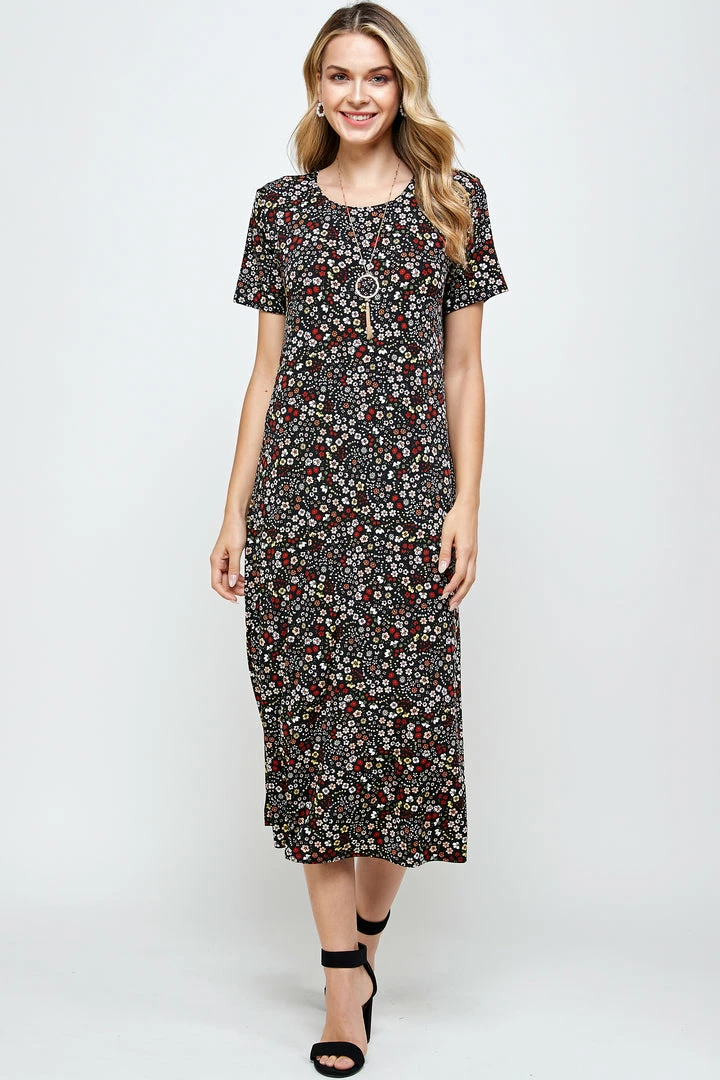 - Short sleeve and soft round-neckline long dress with a variety of prints available.Hand or machine wash in cold water.