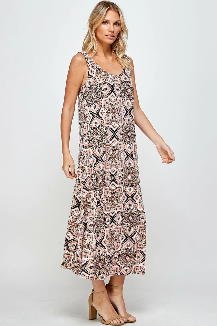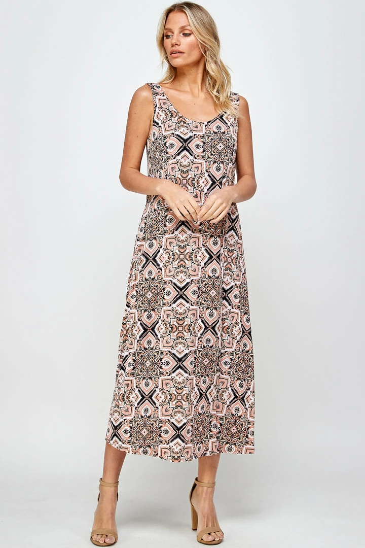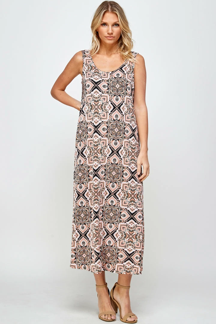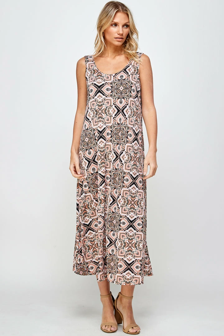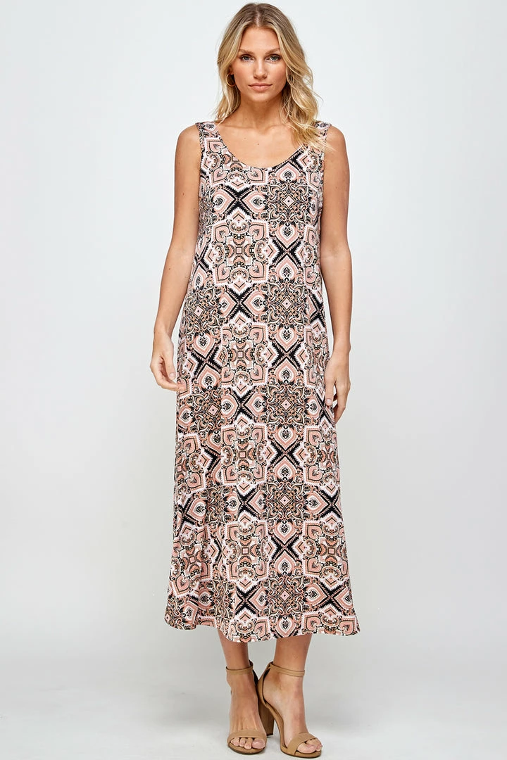 Jostar Stretchy Long Tank Dress Print 700BN-TRP1-W303 Long Length