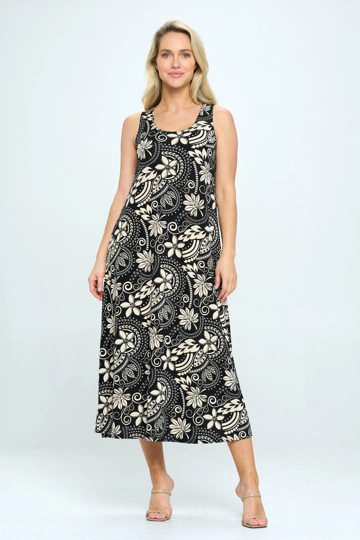Jostar Stretchy Long Tank Dress Print – 700BN-TRP1-W328