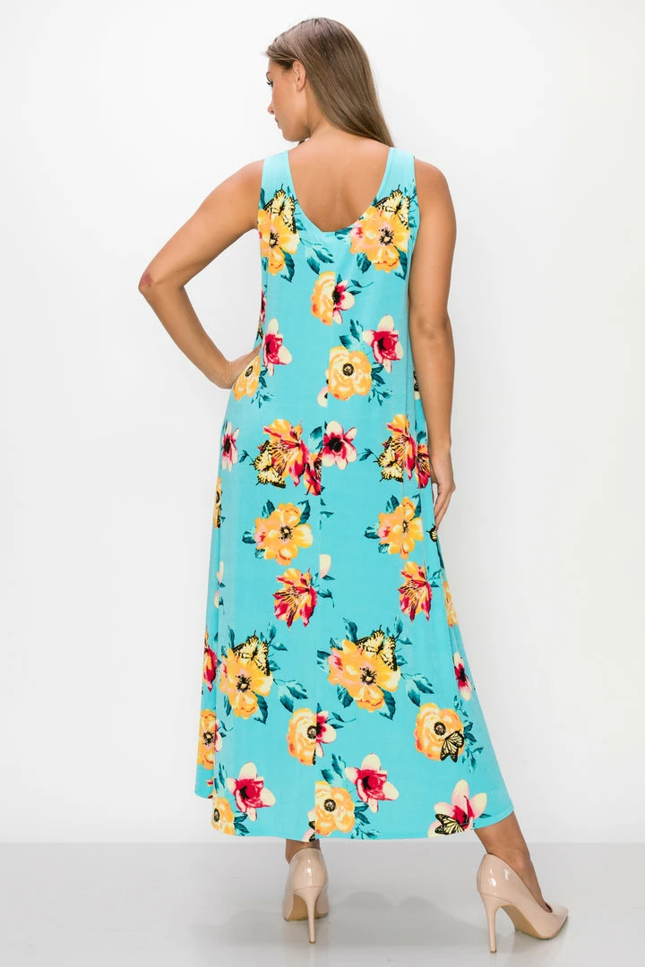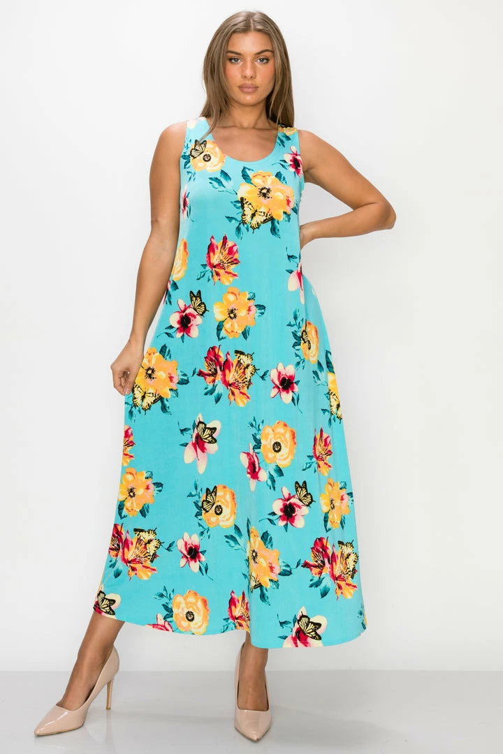 - Sleeveless and soft round-neckline long dress with a variety of prints available.