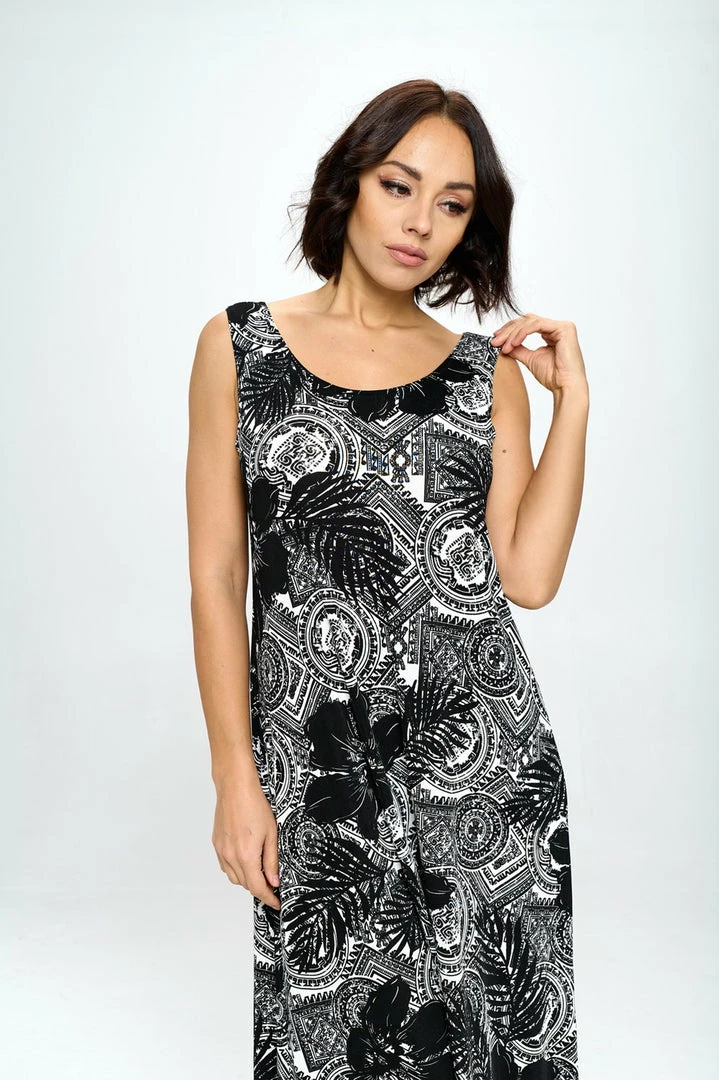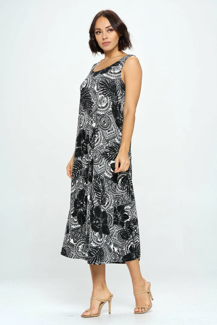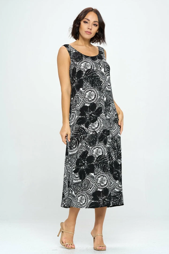 - Sleeveless and soft round-neckline long dress with a variety of prints available.