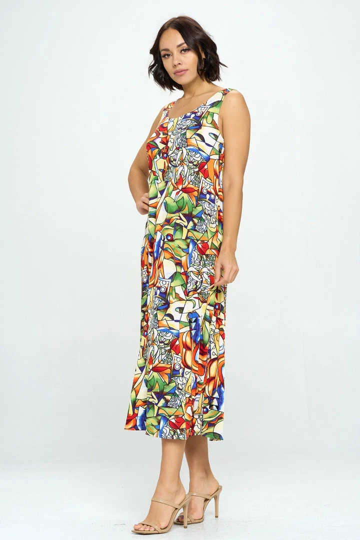 Jostar Stretchy Tank Long Dress Sleeveless Plus In Print-700BN-TXP-W329 Plus Size