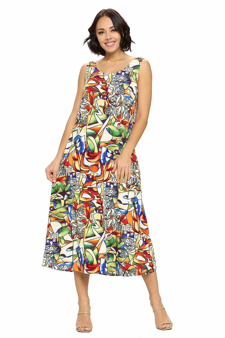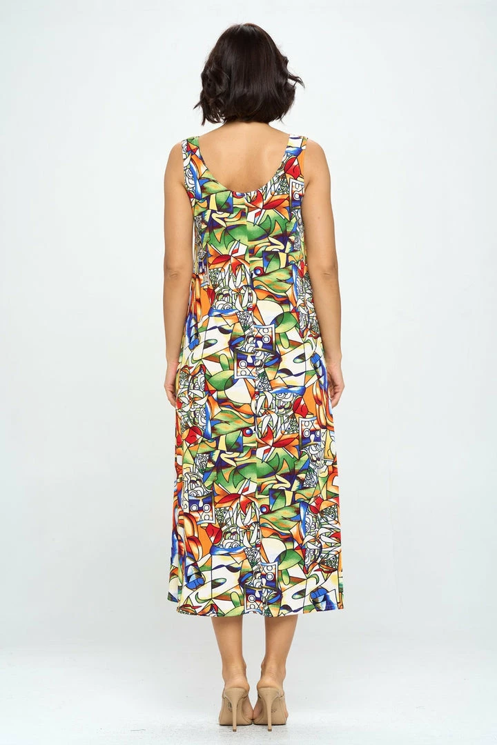 - Sleeveless and soft round-neckline long dress with a variety of prints available.
