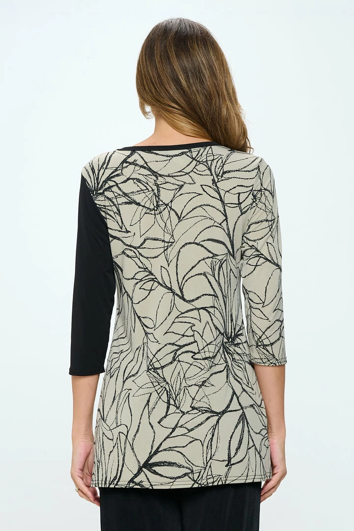 HIT Contrast V-Neck Tunic Top (QS)(Print)(Cont)