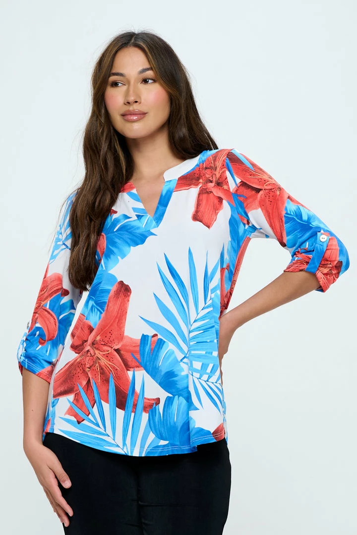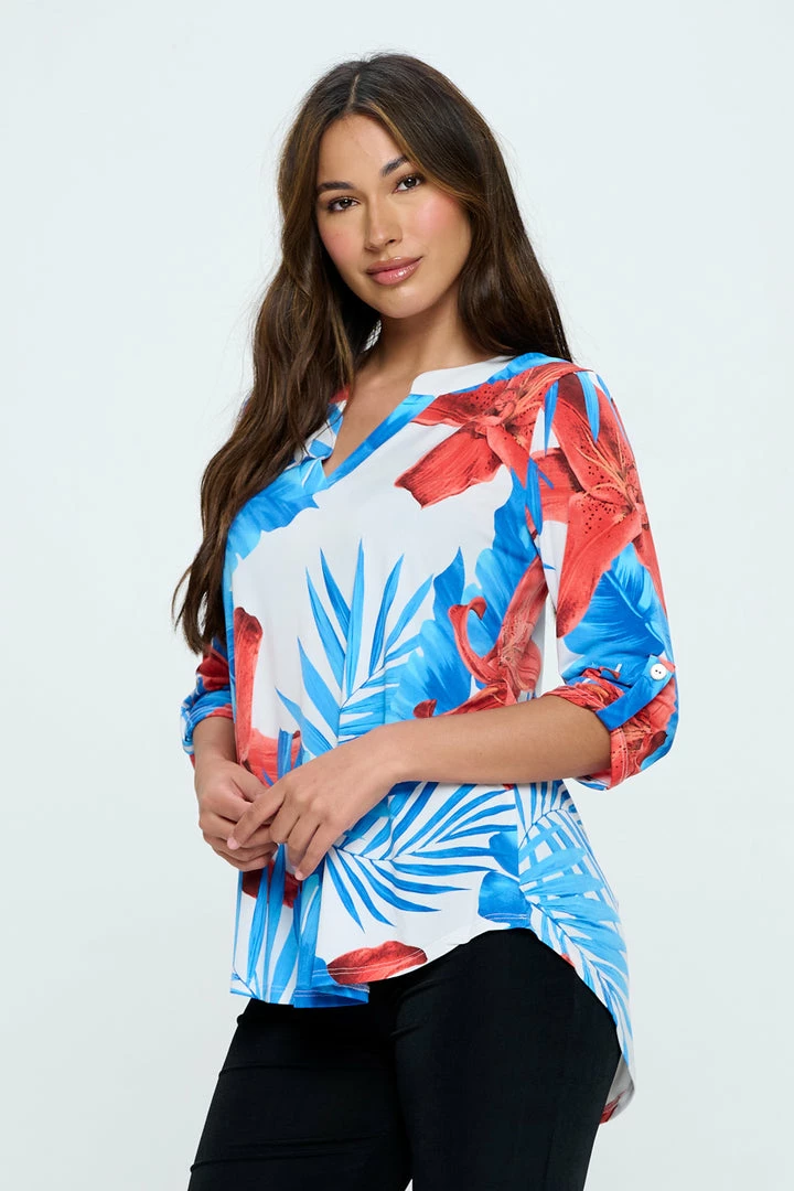 Jostar Tops HIT Notch Neck Rolled Sleeve Top-359HT-QRP1-W280
