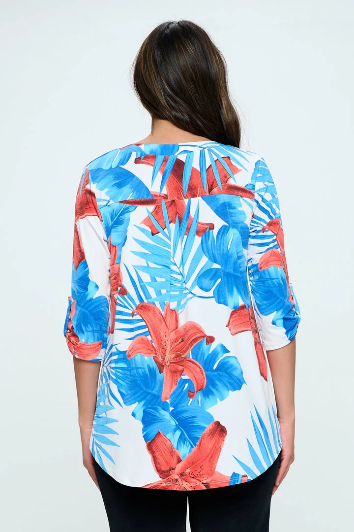Plus Size Jostar Women’s Round Nk Band Tunic Top Quarter Sleeve Sublimation Plus, 345HT-QXU1-R-U182