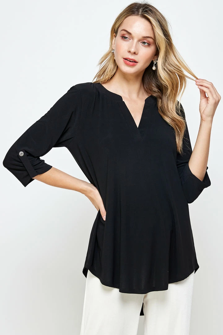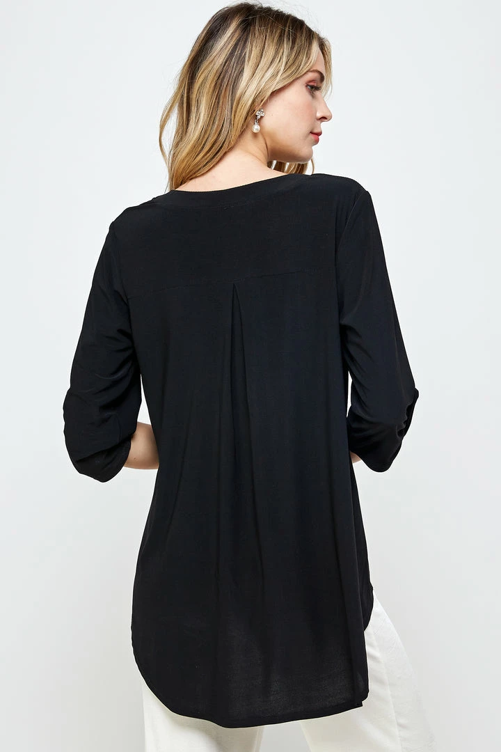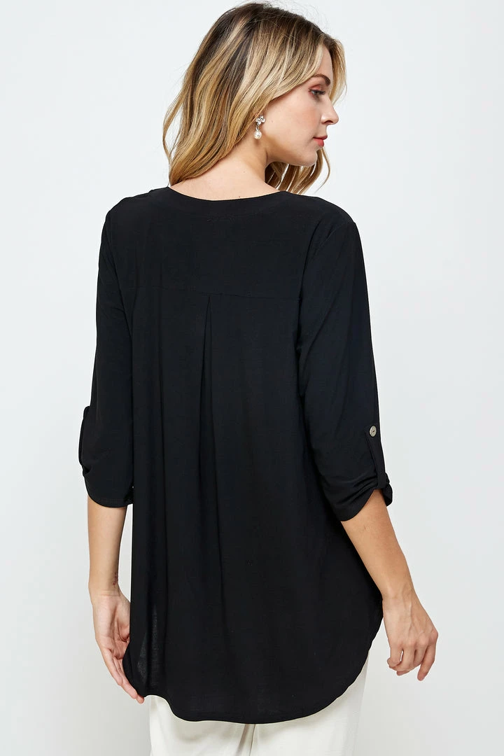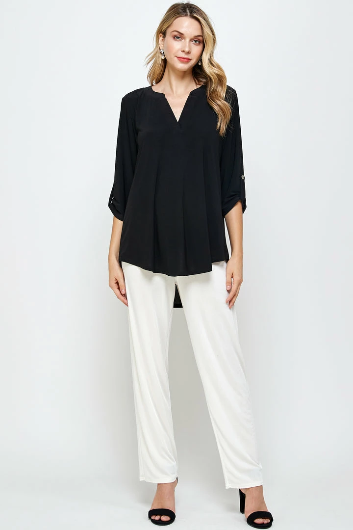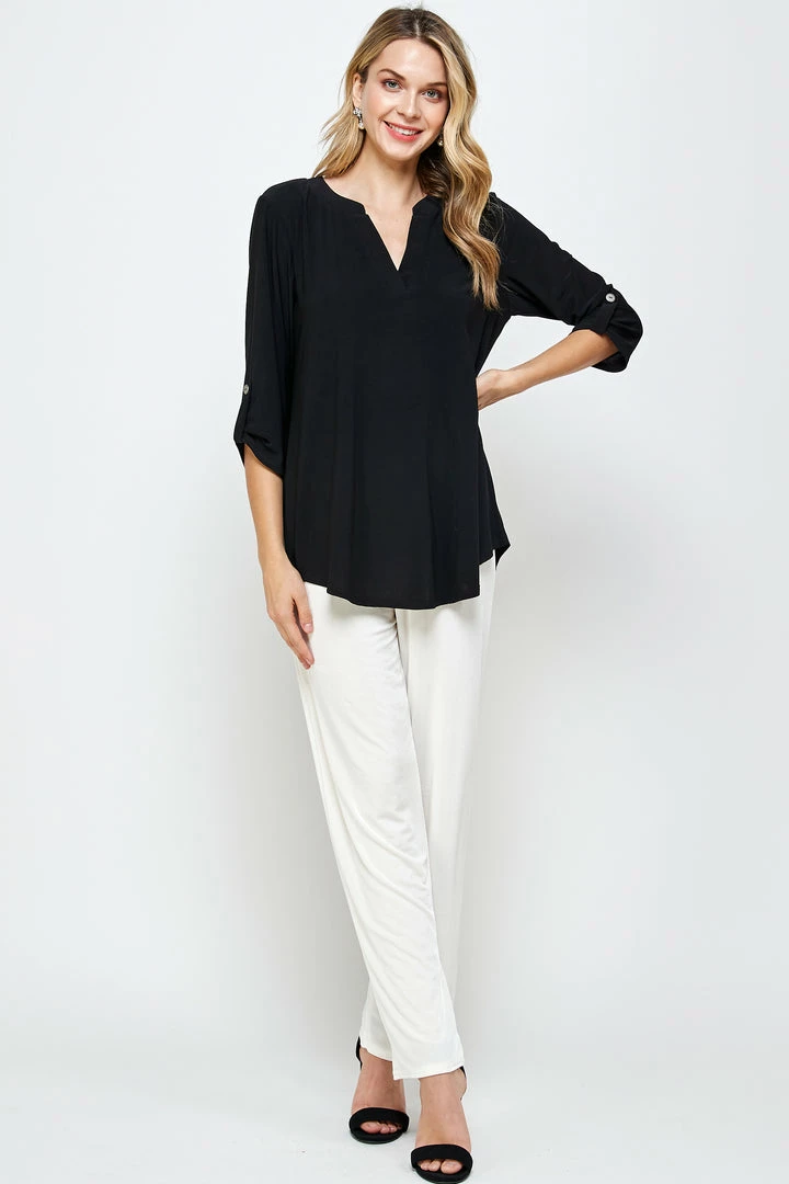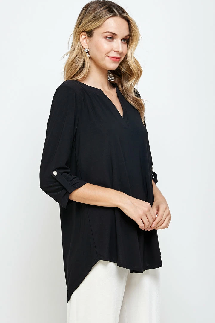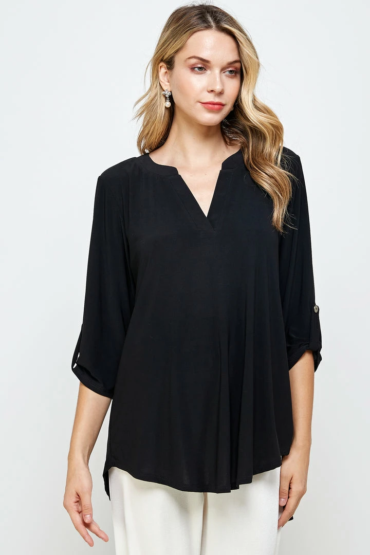 Jostar Tops HIT Notch Neck Rolled Sleeve Top-359HT-QRS1