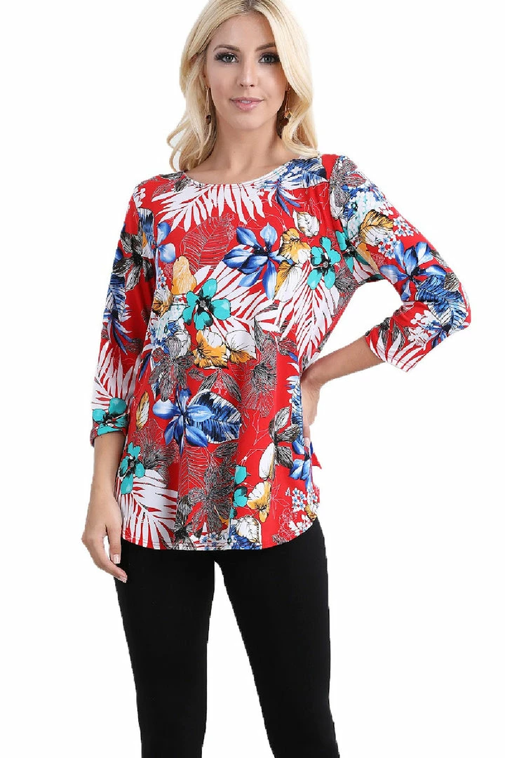Jostar Women’s HIT Rounded Bottom Tunic Top Quarter Sleeve Print-346HT-QRP1-W221 Quarter Sleeves