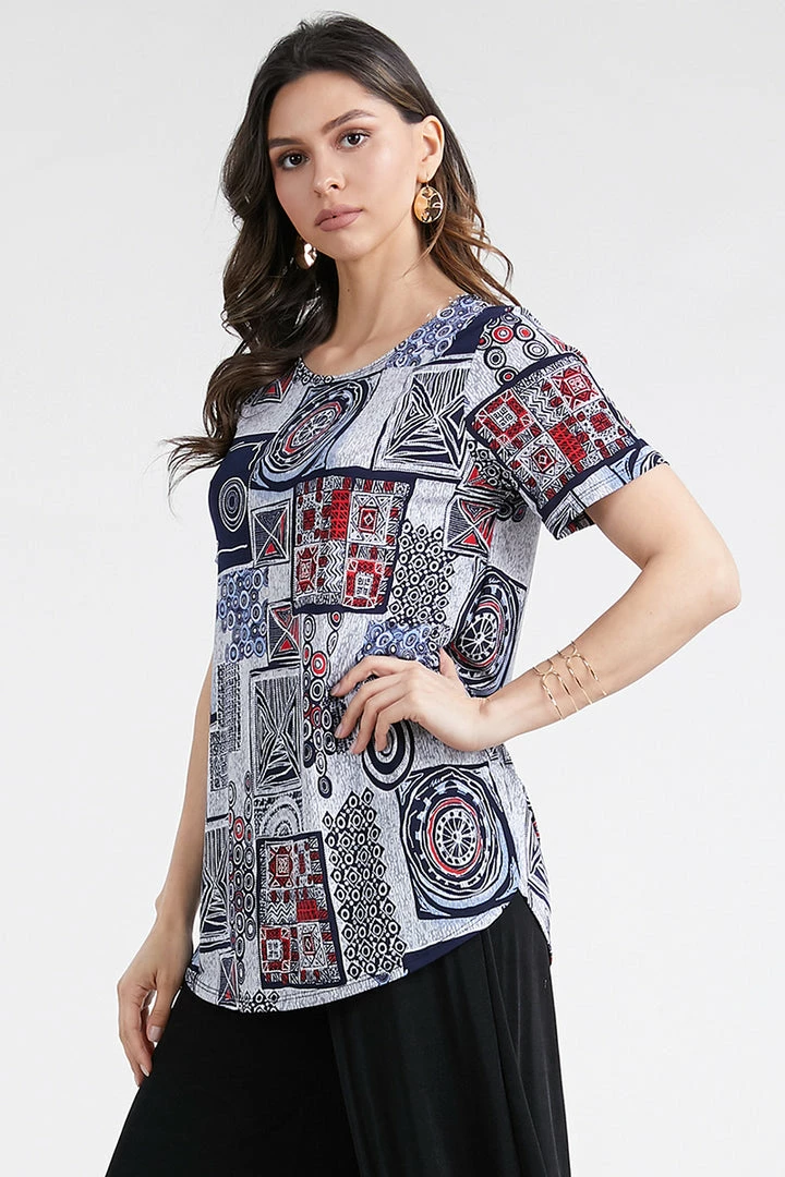 Jostar Women’s HIT Rounded Bottom Tunic Top Short Sleeve Print, 346HT-SXP-W192 Tops