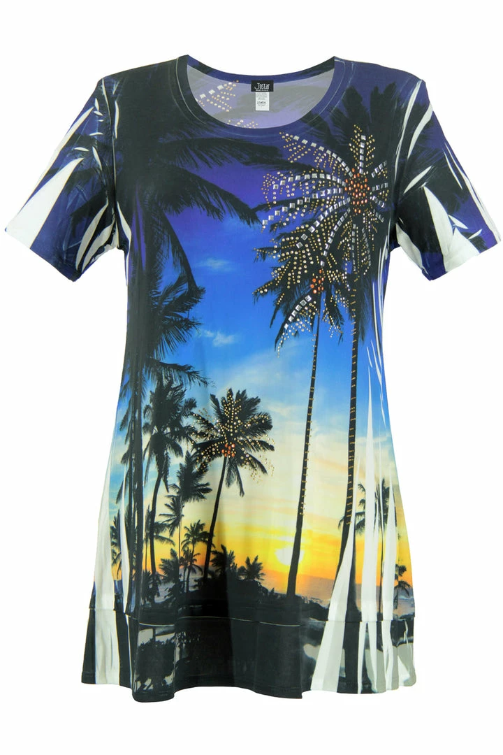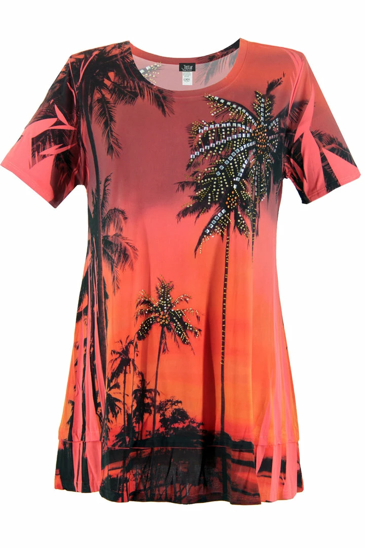 Jostar Women’s HIT Slub Bottom Layered Top Short Sleeve Sublimation Rhinestone, 326HT-SXU-R-U714 Tops