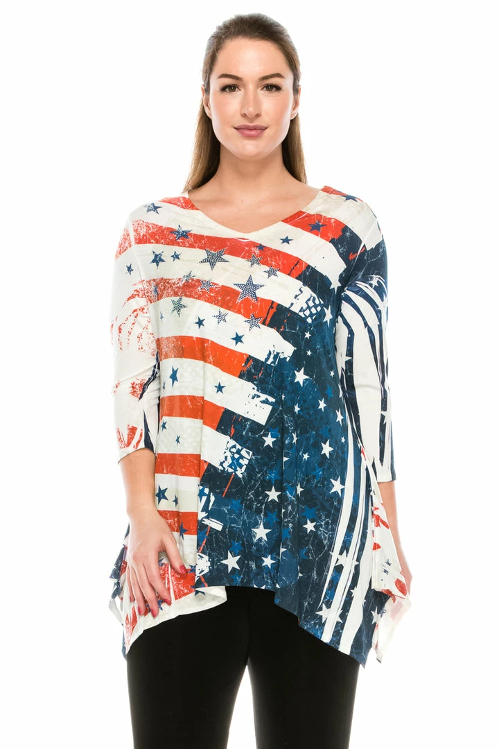 Plus Size Jostar Women’s HIT V-Neck Binding Top 3/4 Sleeve Sublimation Plus, 313HT-QXU-R-U169