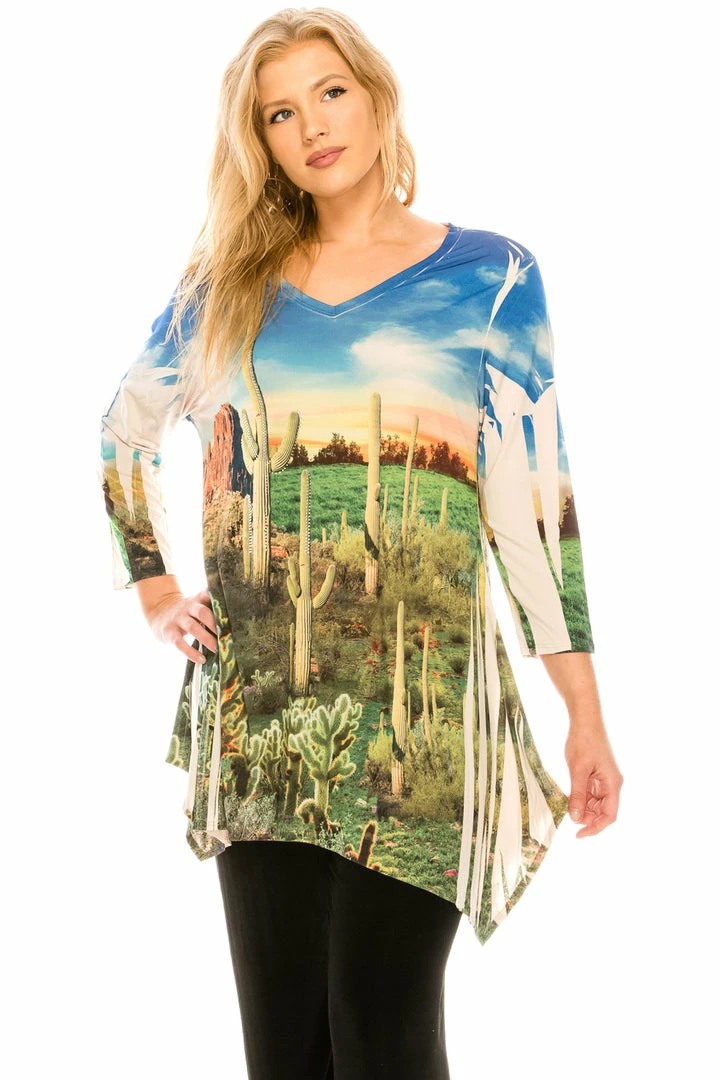 Plus Size Jostar Women’s HIT V-Neck Binding Top 3/4 Sleeve Sublimation Plus, 313HT-QXU-R-U169
