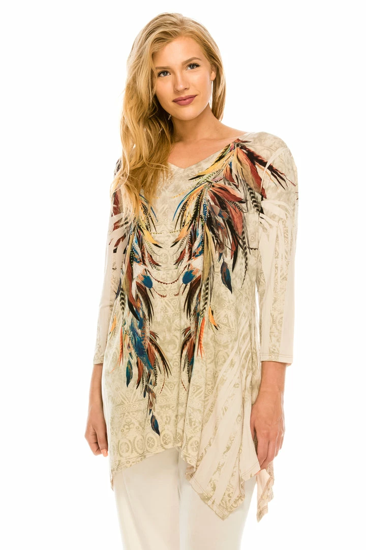 Jostar Women’s HIT V-Neck Binding Top 3/4 Sleeve Sublimation Rhinestones, 313HT-QU-R-U173 Quarter Sleeves
