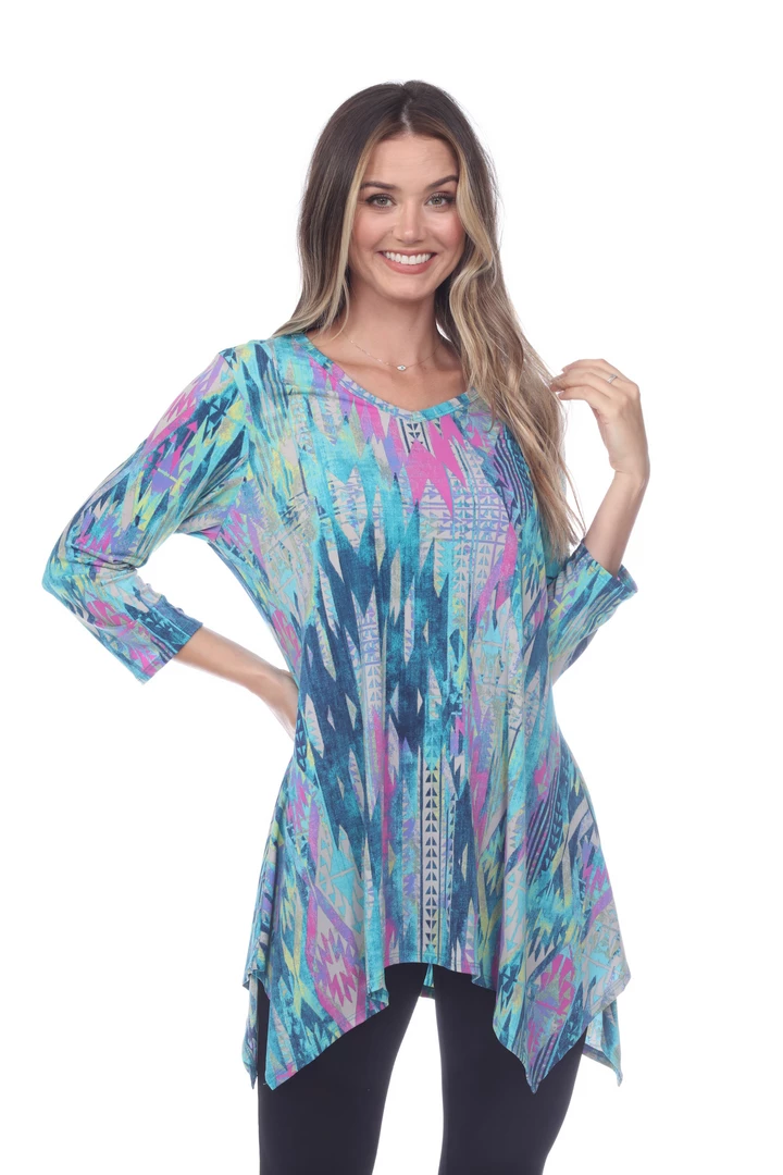 Jostar Women’s HIT V-Neck Binding Top Half Sleeve Print-313HT-QRP1-W257 Quarter Sleeves