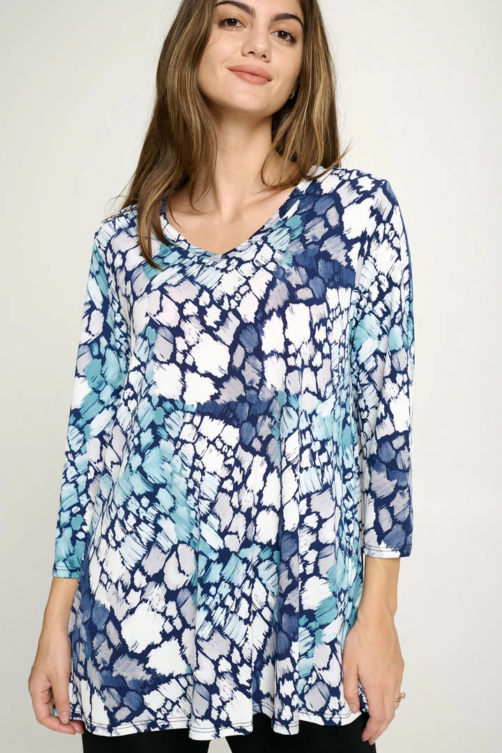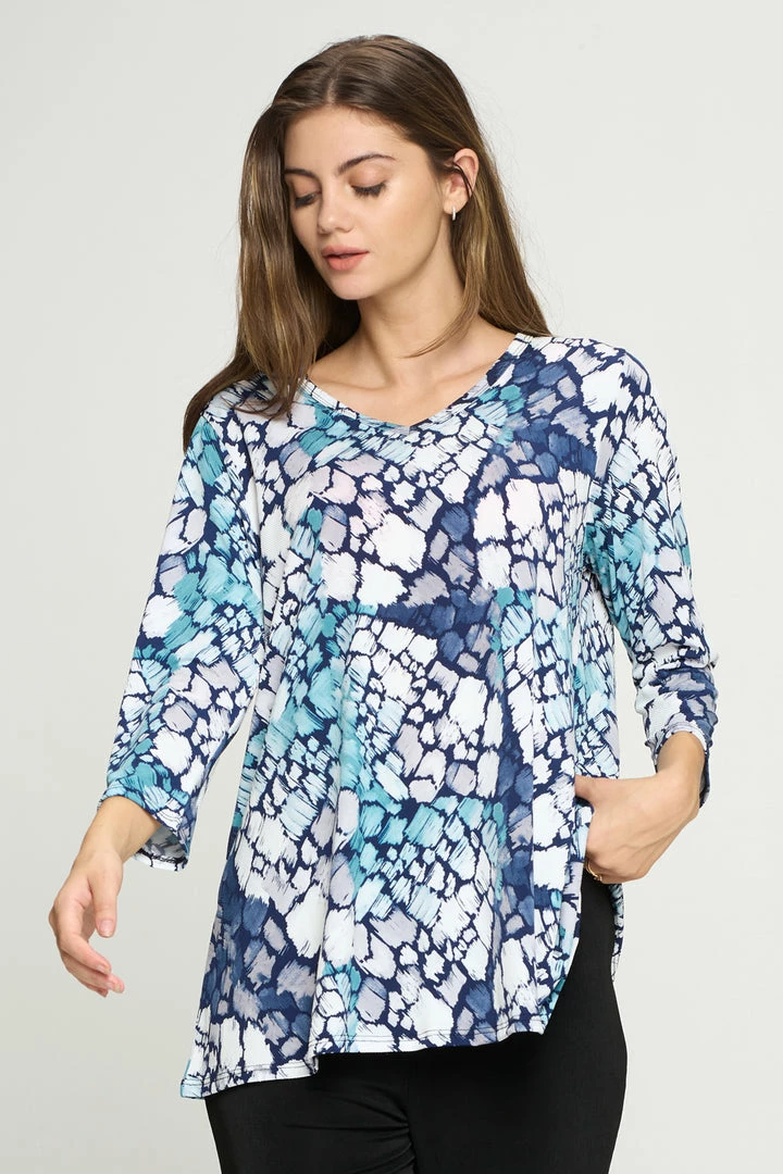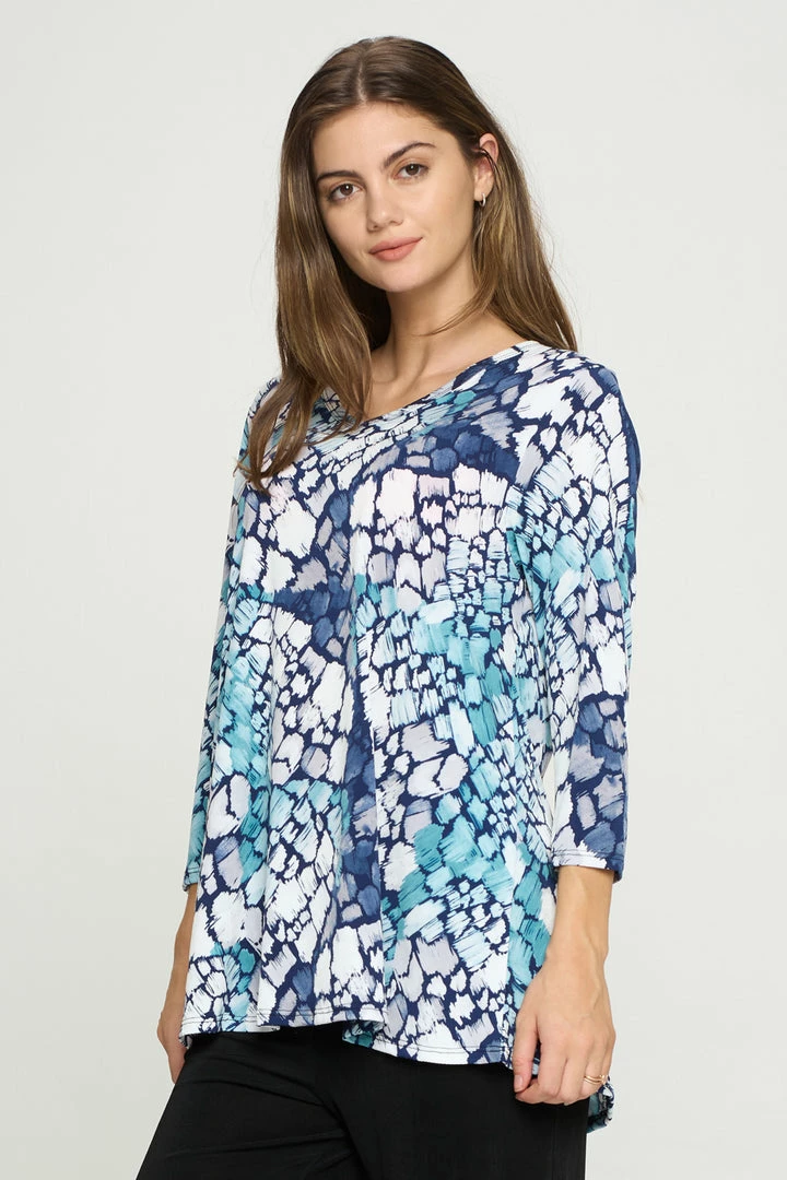 Jostar Women’s HIT V-Neck Binding Top Half Sleeve Print, 347HT-QRP1-W313