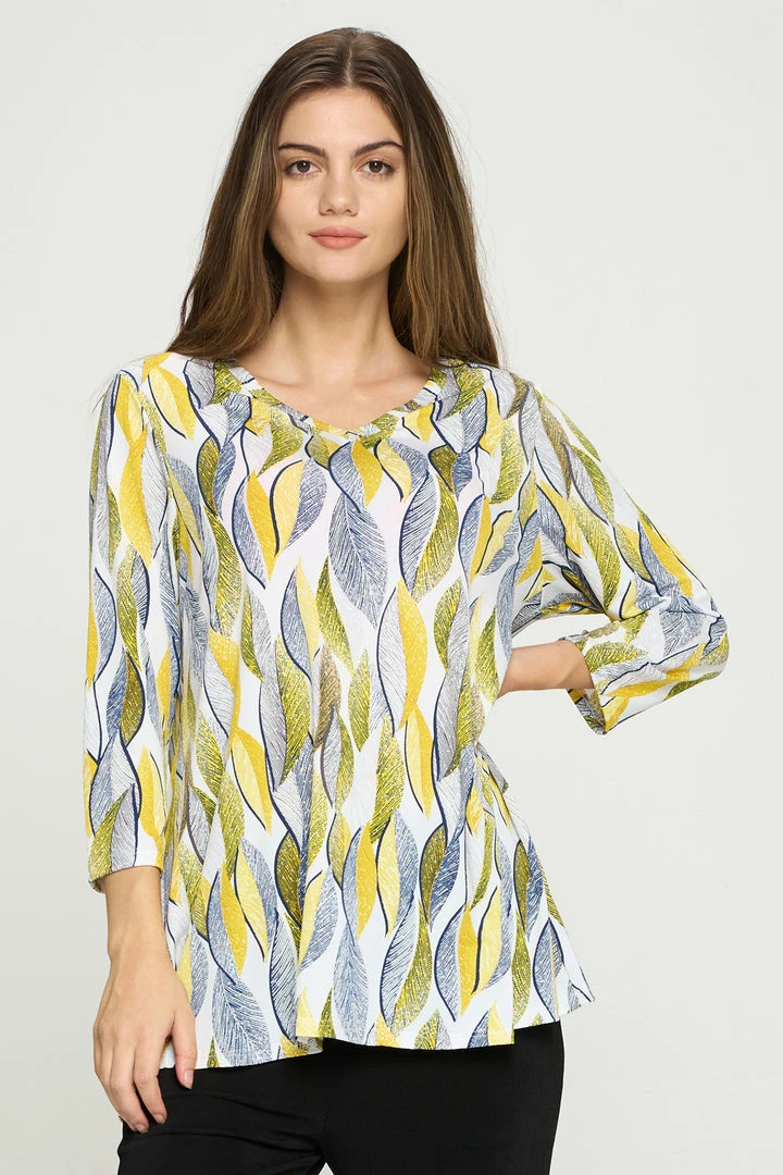 Jostar Women’s HIT V-Neck Binding Top Half Sleeve Print, 347HT-QRP1-W314