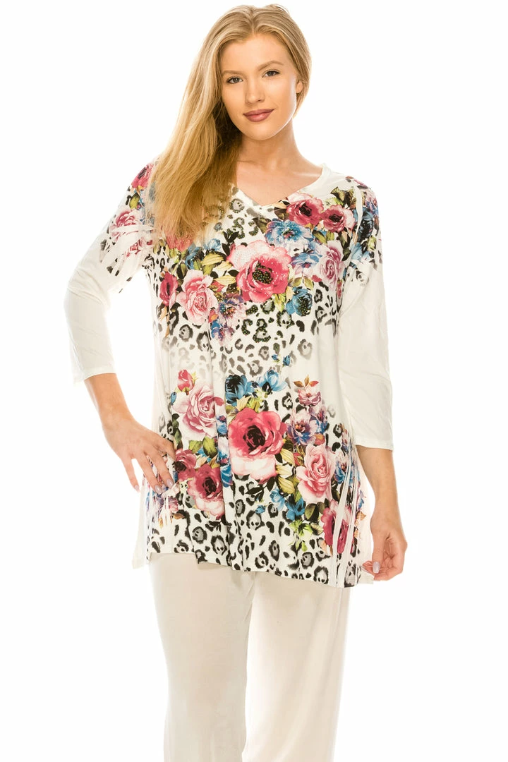 Plus Size Jostar Women’s HIT V-Neck Binding Top 3/4 Sleeve Sublimation Plus, 313HT-QXU-R-U052