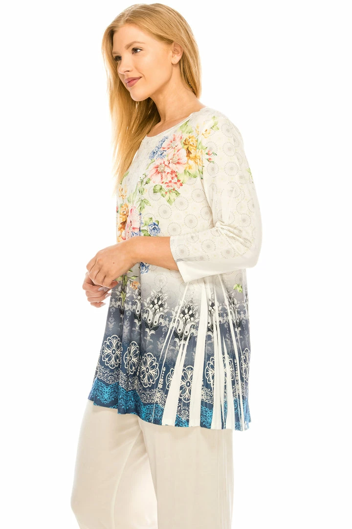 Jostar Women’s Round Nk Band Tunic Top Quarter Sleeve Sublimation Plus, 345HT-QXU1-R-U183 Plus Size
