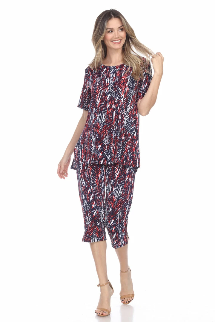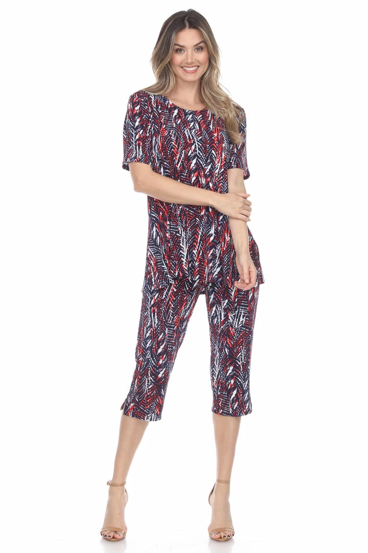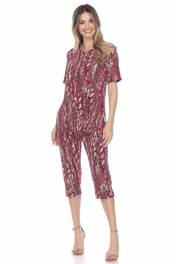 Jostar Women’s Stretchy Capri Pant Set Short Sleeve Print-903BN-SRP1-W247 Pant Sets